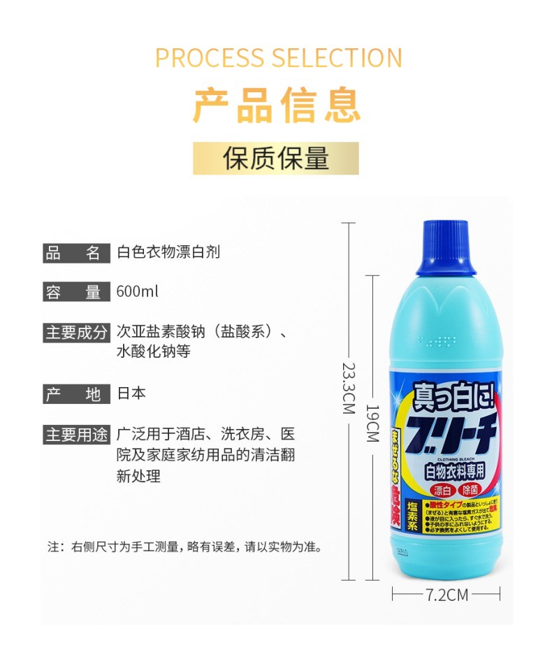 Импортированный японский отбеливатель для белой одежды 600мл, дезинфекция и удаление накипи