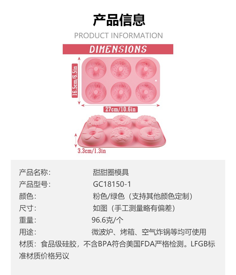 Силиконовая форма для пончиков Fcm 6 ячеек для выпечки десертов легко извлекаемая форма