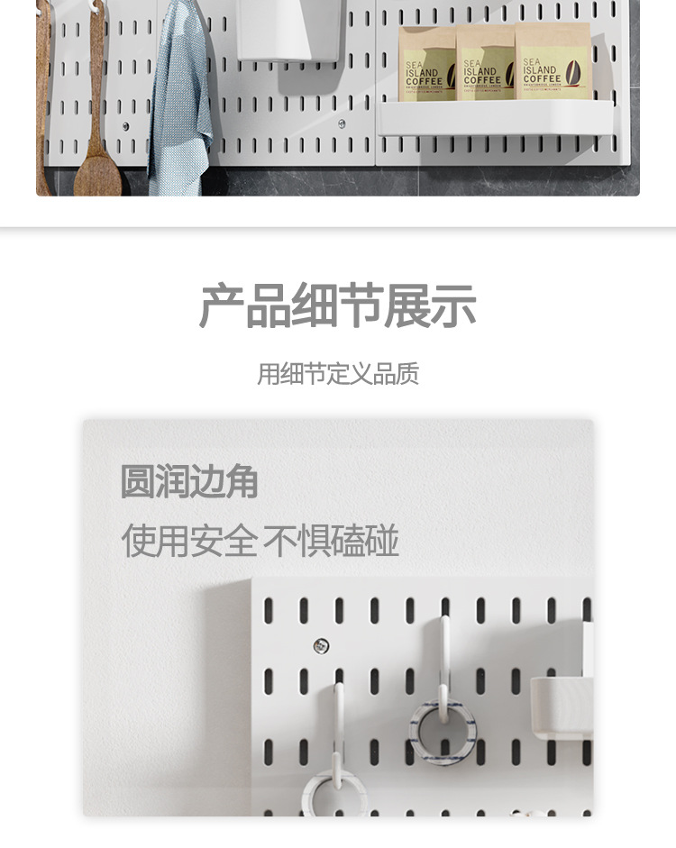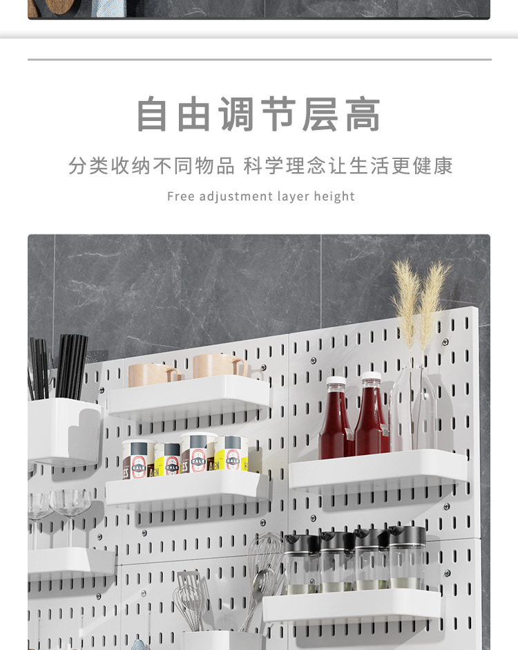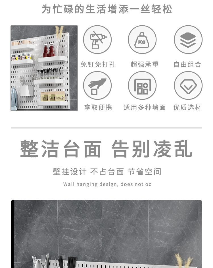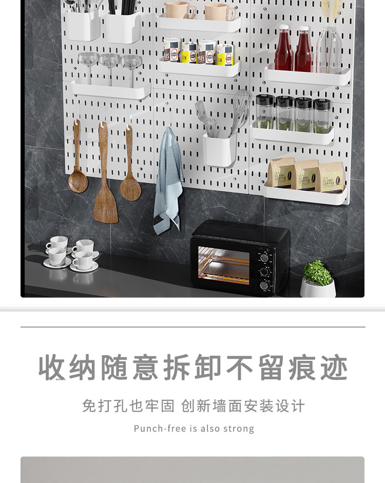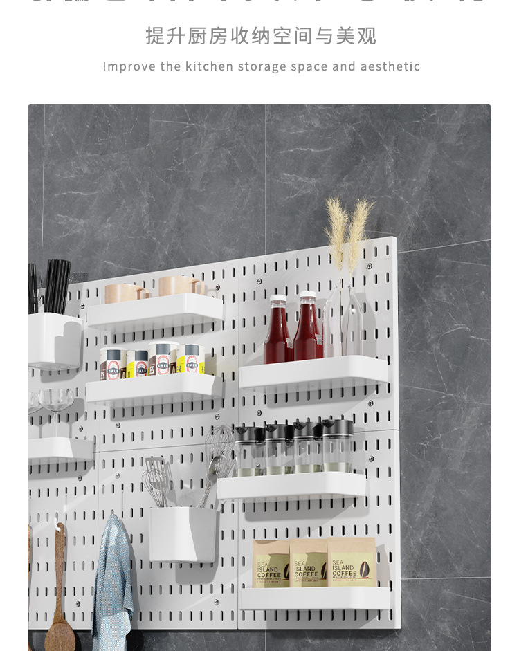 Кухонный настенный стеллаж для гостиной и общежития, белый, без сверления, утолщенный, модульный, совместим с перфорированными панелями