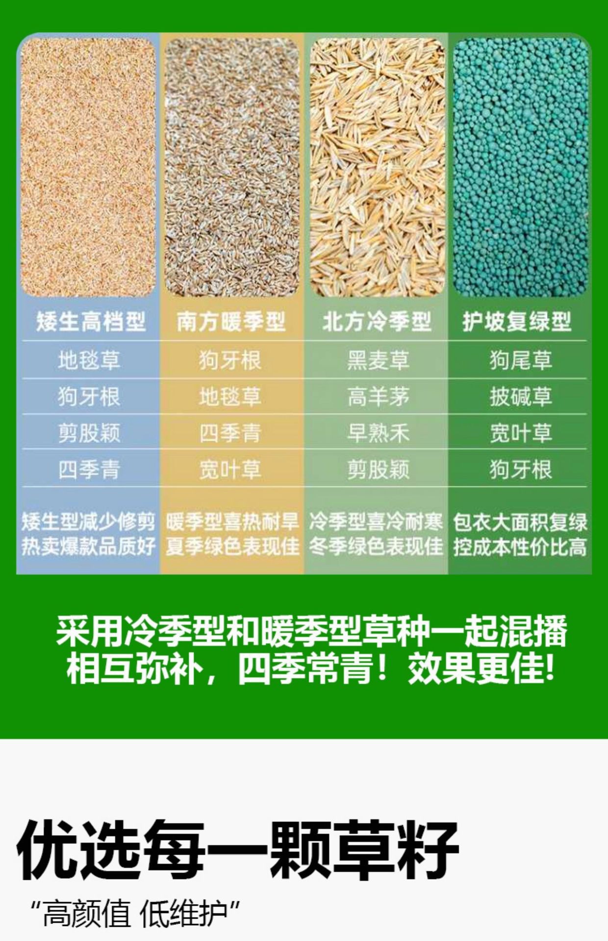 📦 | American four seasons green coated [cold resistant four seasons] 100g | 0.5kg [can be broadcasted to 15 to 20 square meters] | ¥2.0 / ≈ 24 ₽ | 33181 | 5885135386538 | |