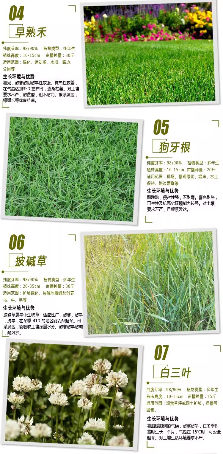 ![]() | Alkali-protecting grass [salt and alkali resistant] | 0.5kg [can be broadcasted to 15 to 20 square meters] | ¥35.0 / ≈ 426 ₽ | 2219 | 5817635342594 | |