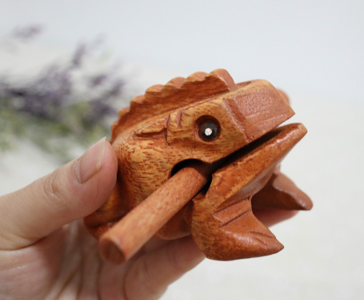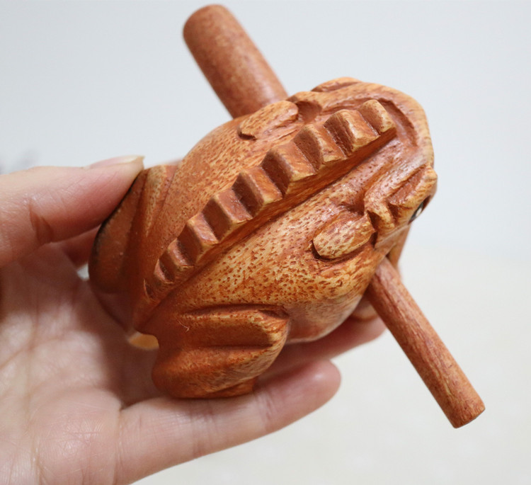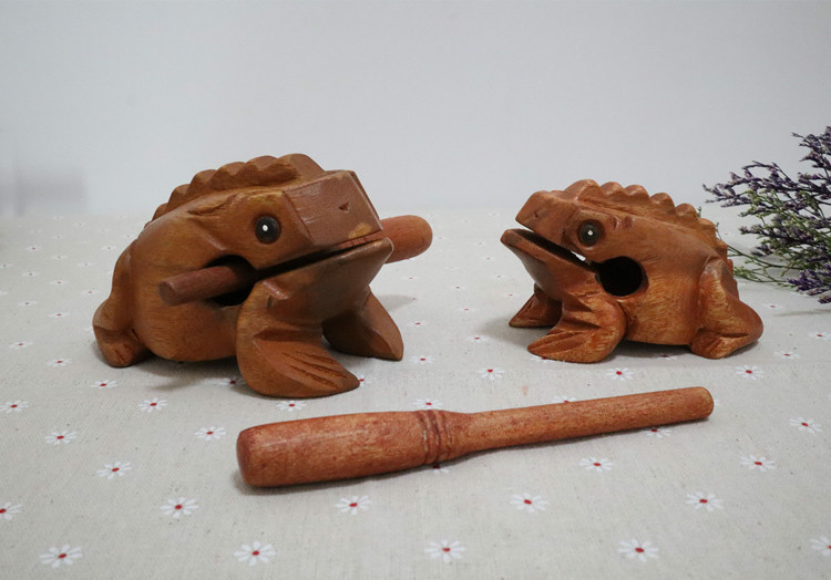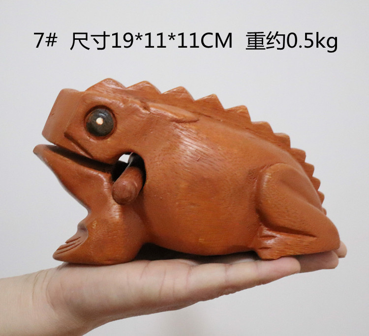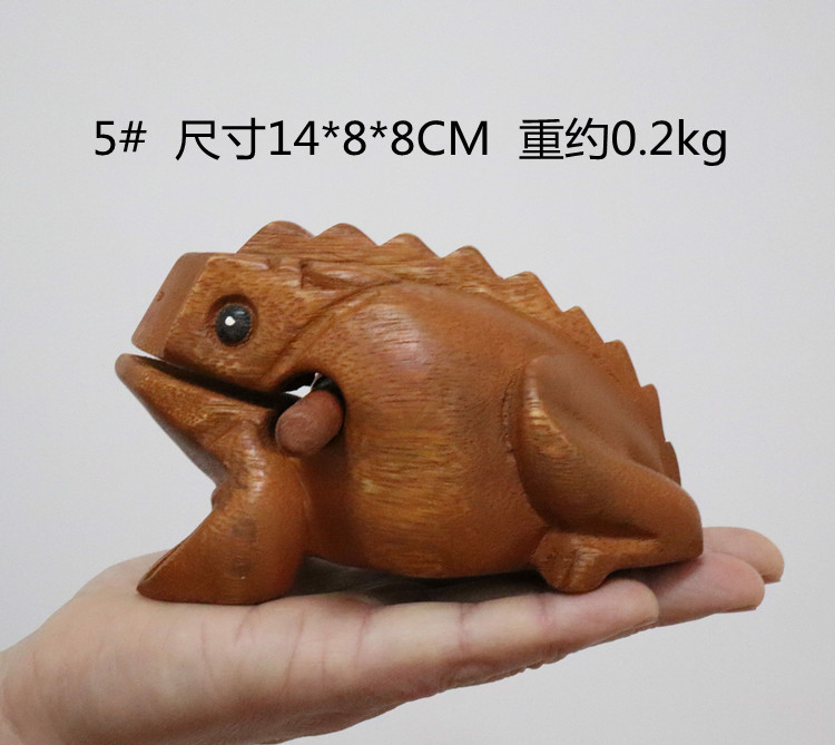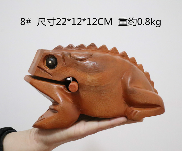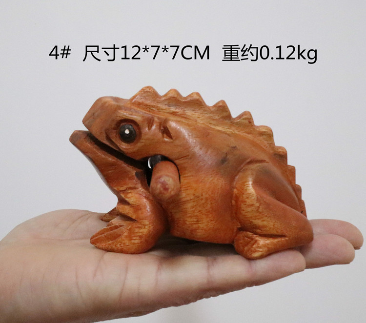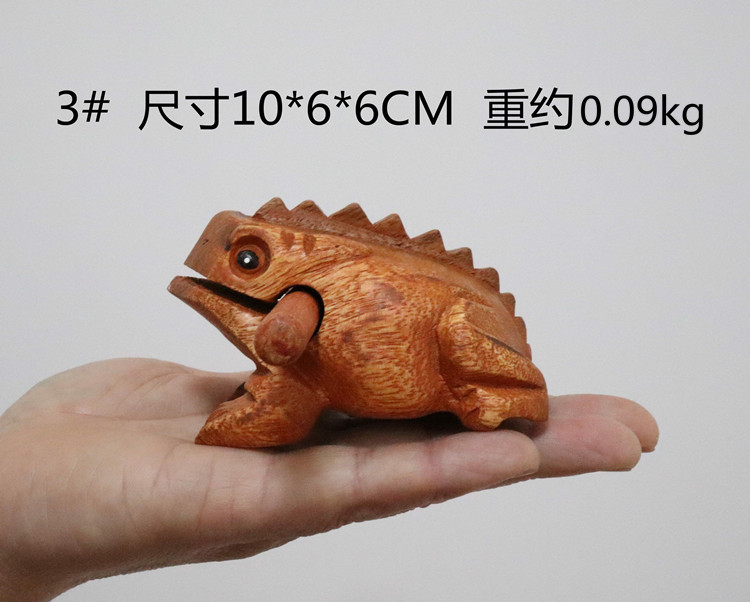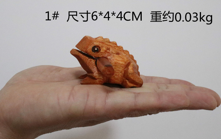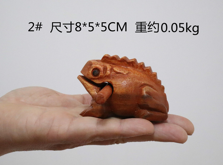 木蛙为手工粗雕产品,每个都不完美,刀刻印,木结疤,纹理印记,颜色不均匀,大小不一样都属正常现象,非质量问题。(越小的蛙声音越清脆,越大的蛙声音越厚重)