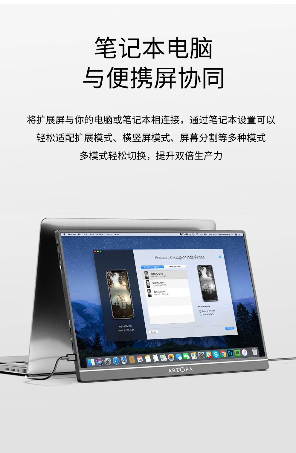 ARZOPA 15.6 дюймов Портативный монитор Компьютер Ноутбук Вторичный экран Мобильный телефон Switch PS4/5 Расширенный экран