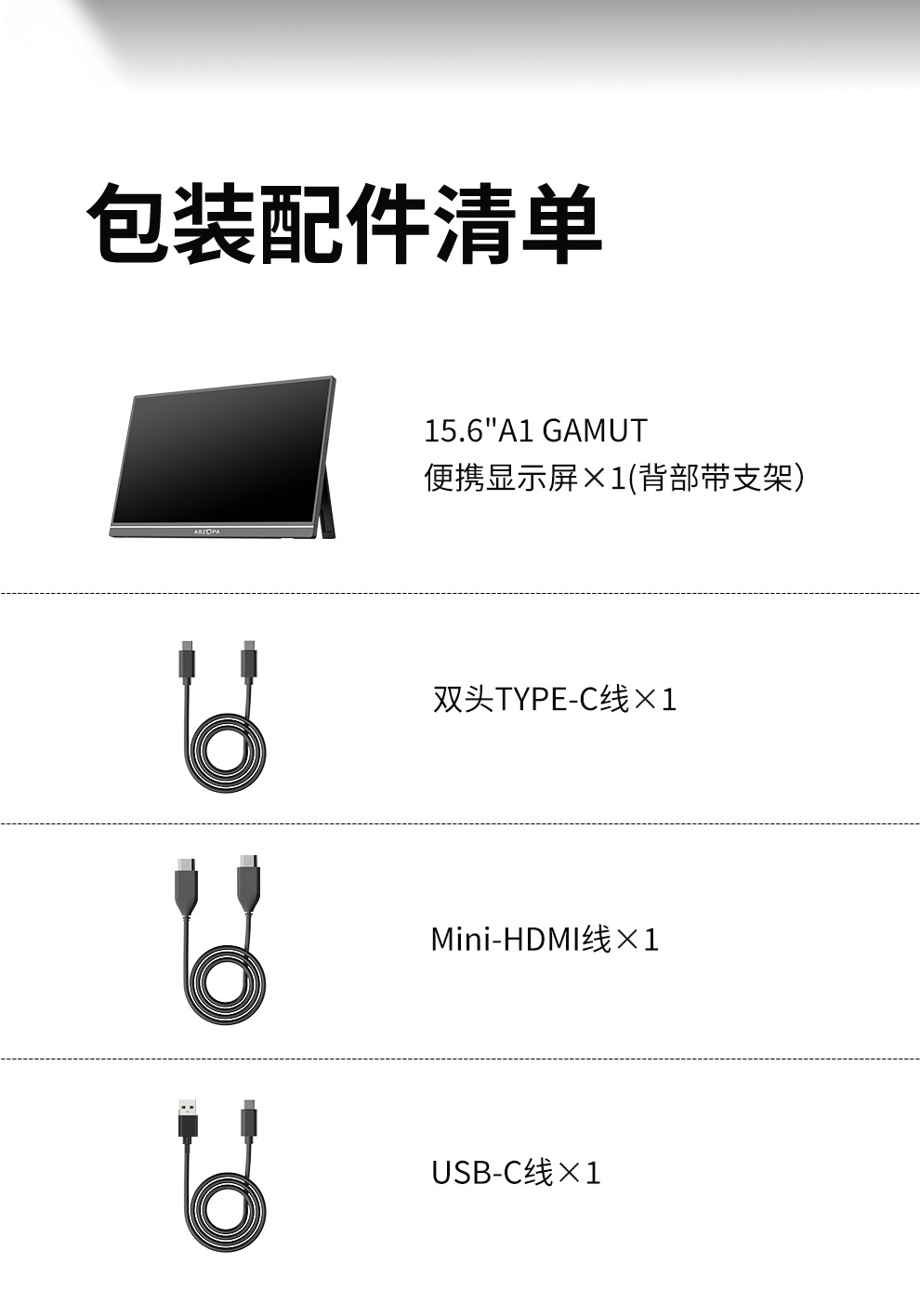 Список упаковки 1*portable monitor, standard three wires, 1*user manual