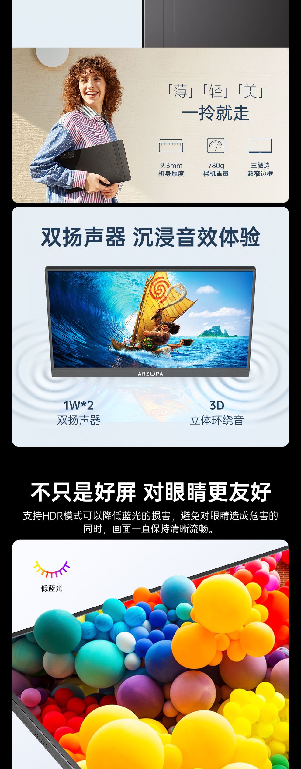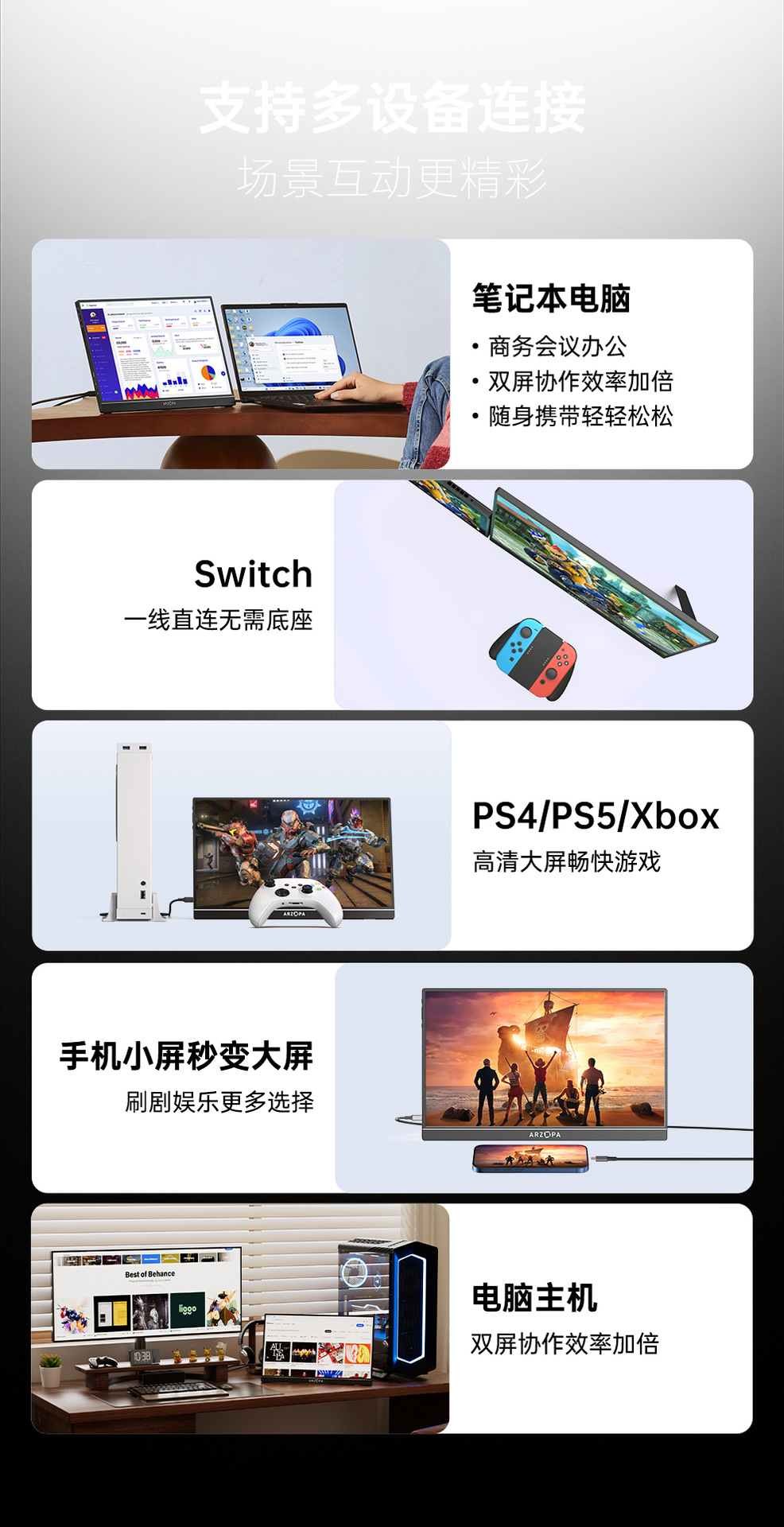 ARZOPA 30.5 дюймов HZ Портативный монитор Ноутбук Мобильный телефон Прямое подключение Вторичный экран