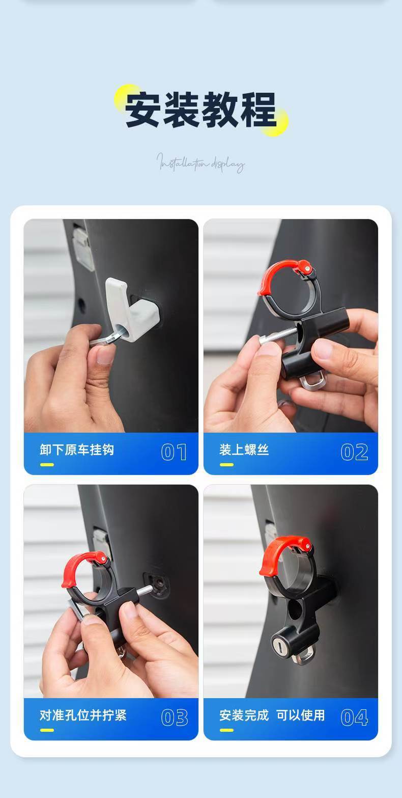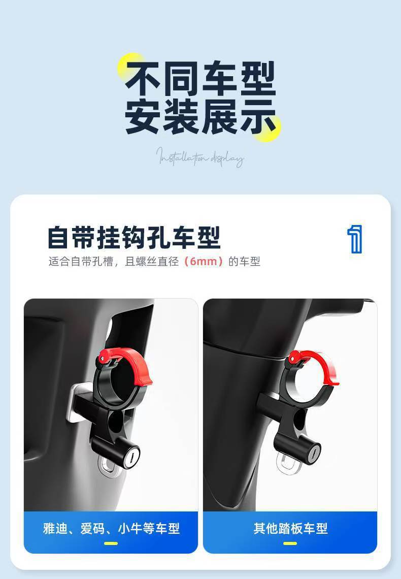 Передний крюк для электросамоката, установка без сверления, подвесной крюк для аккумуляторного велосипеда, замок для шлема самоката, противоугонный замок