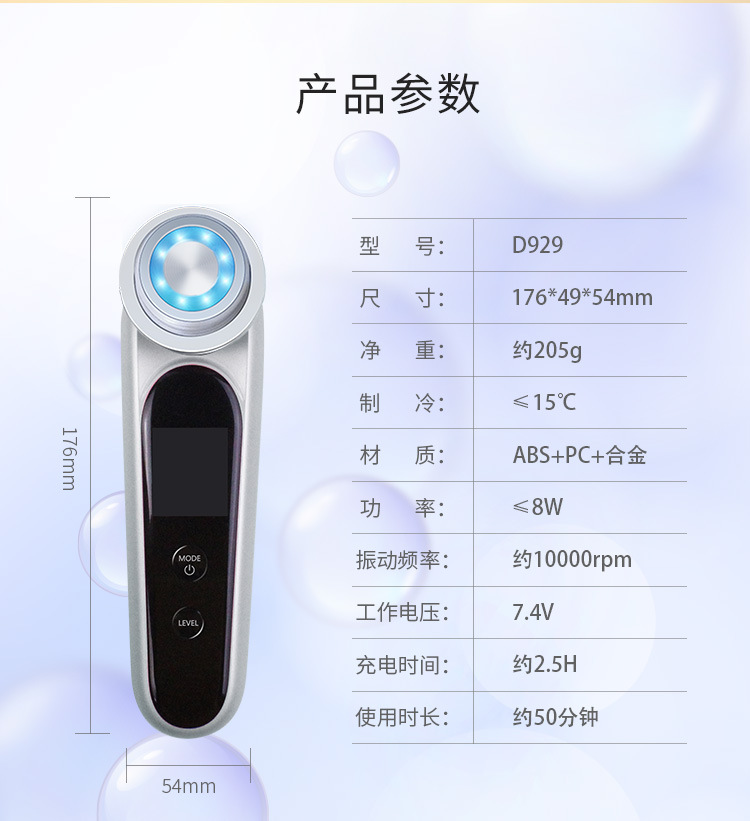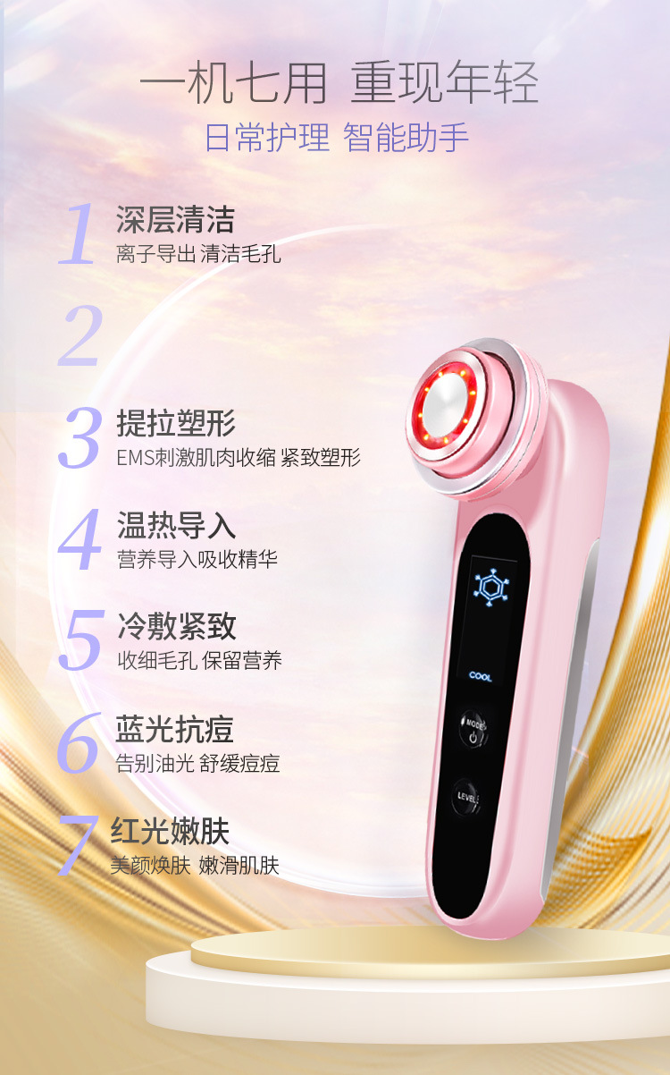 功能介绍: 震动 离子 EMS 红光 蓝光 温热 冷敷 带卸妆圈