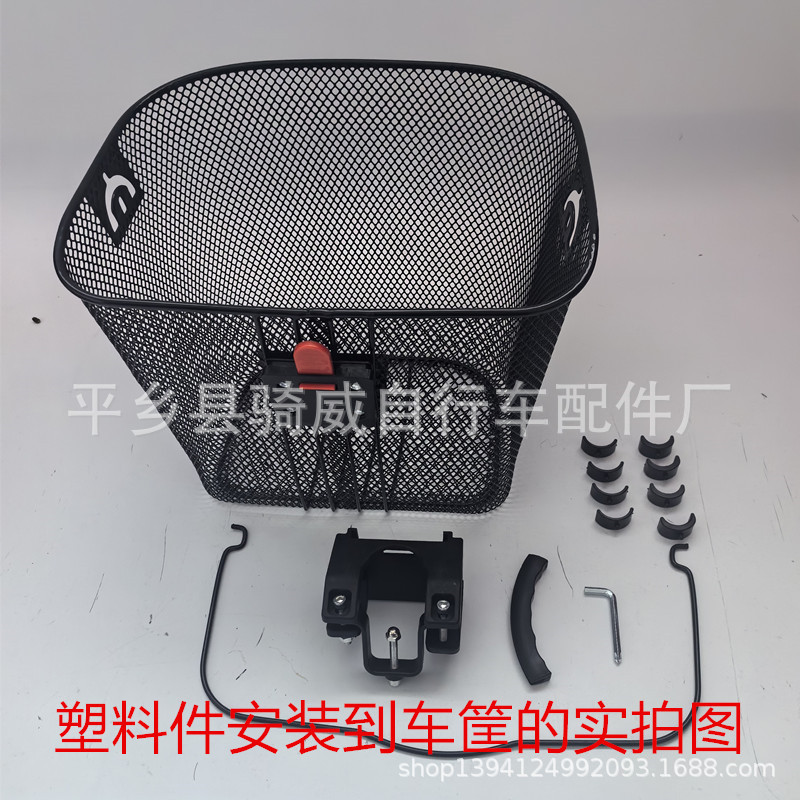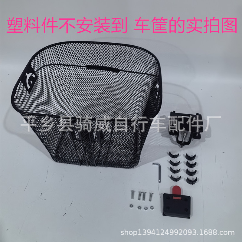 默认颜色黑色。塑料件发货的时候不安装到车筐上面。链接有两种安装配件,要那种请联系客服。默认款式为主图的不带中间两条铁丝的款式。详细细节与客服沟通
