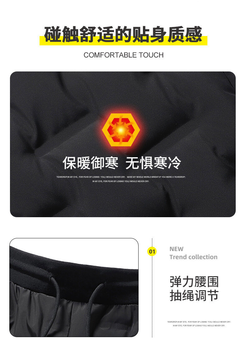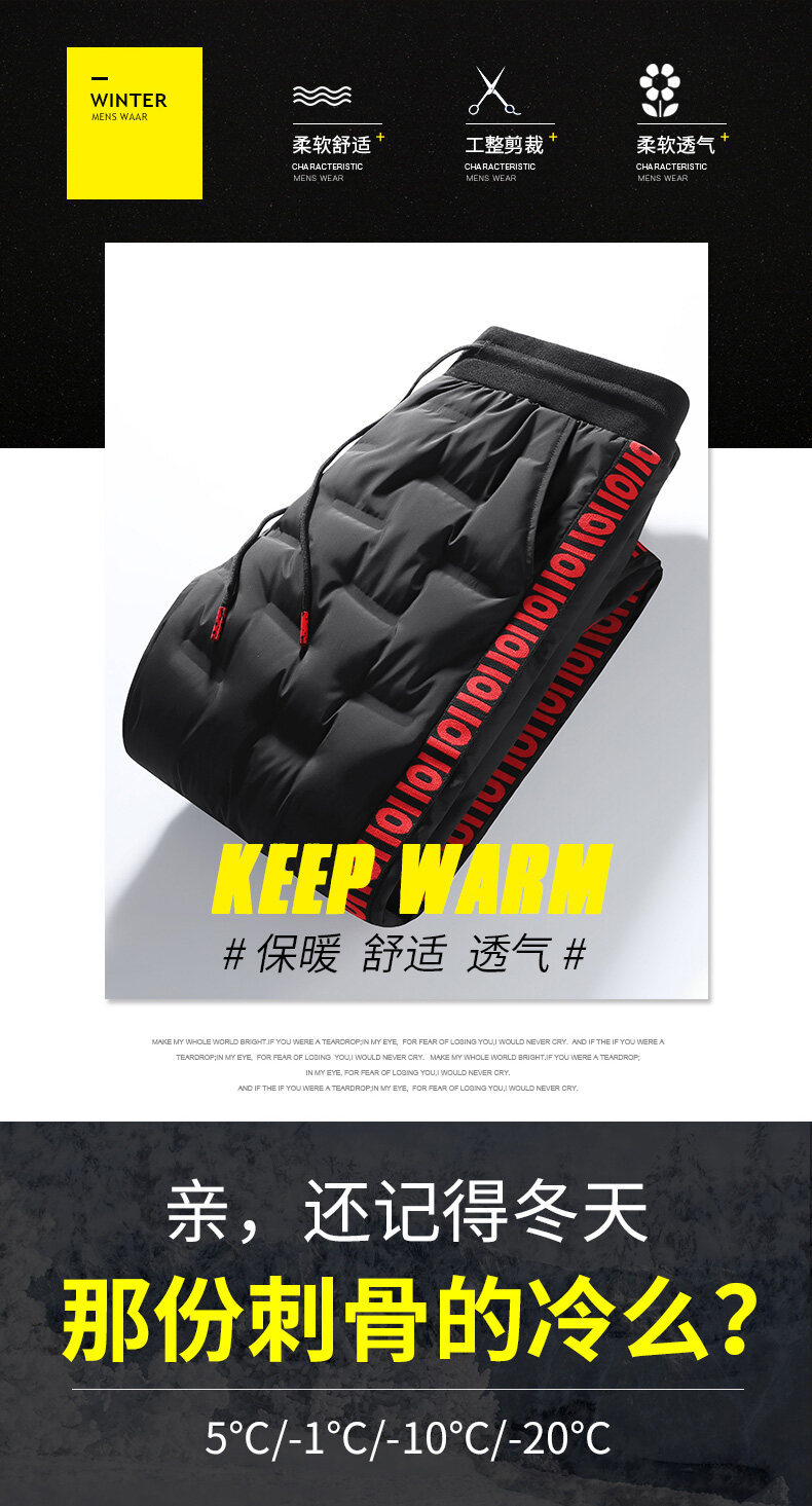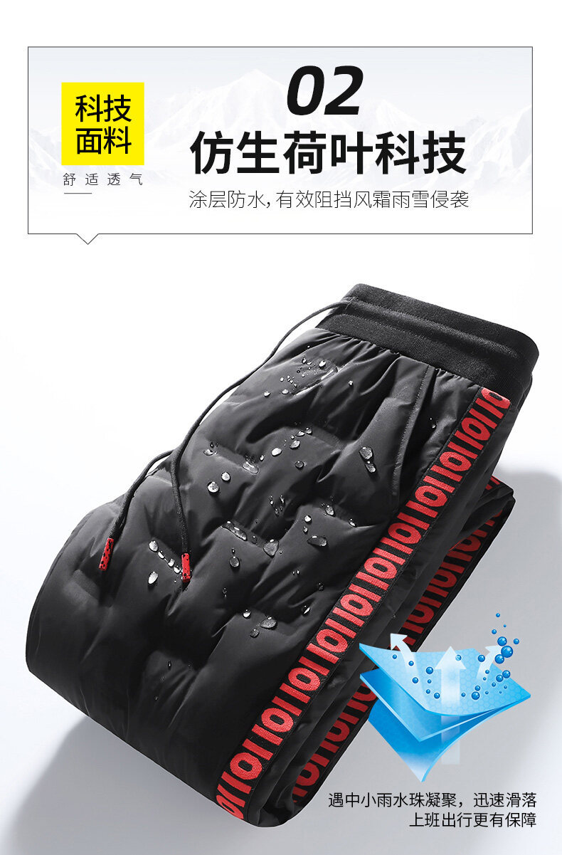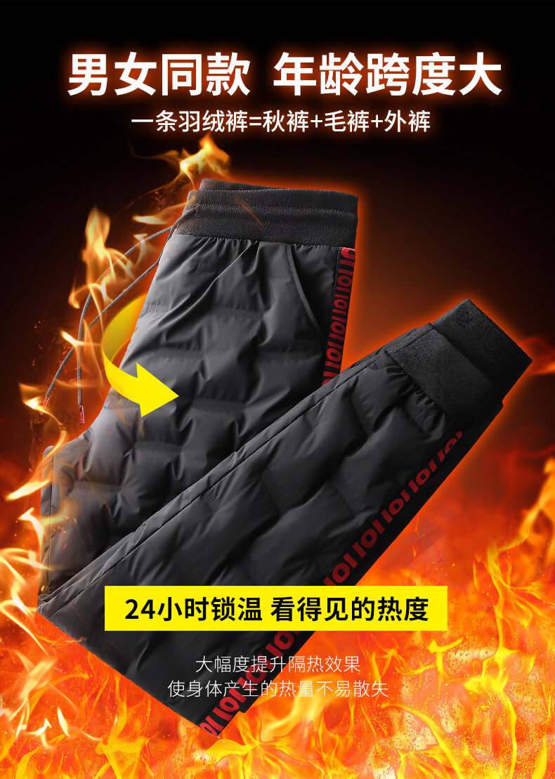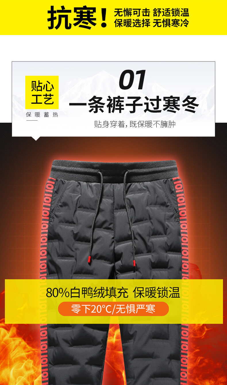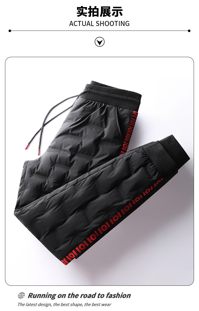 Кросс-бордерные молодежные узкие спортивные брюки экстра большого размера утолщенные зимние брюки с утеплителем из утиных перьев для мужчин