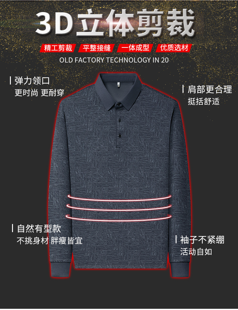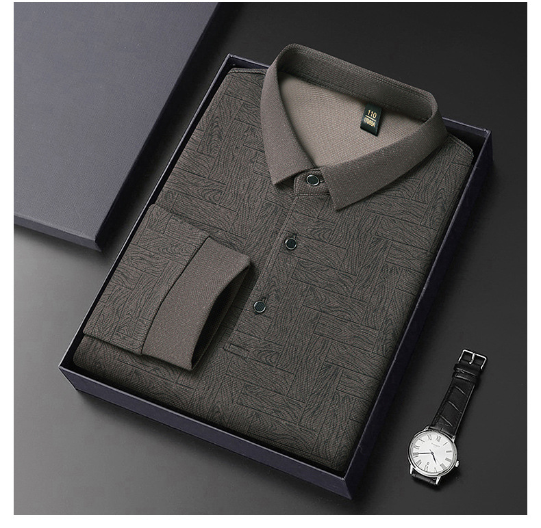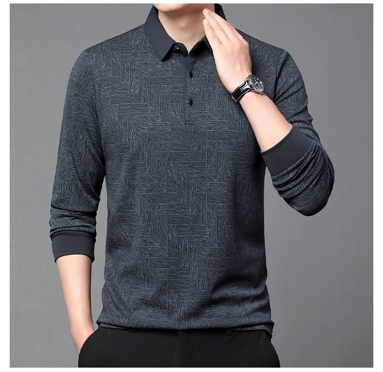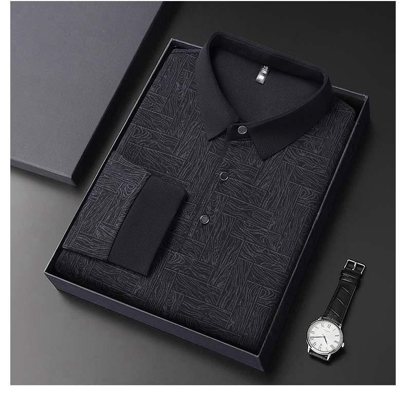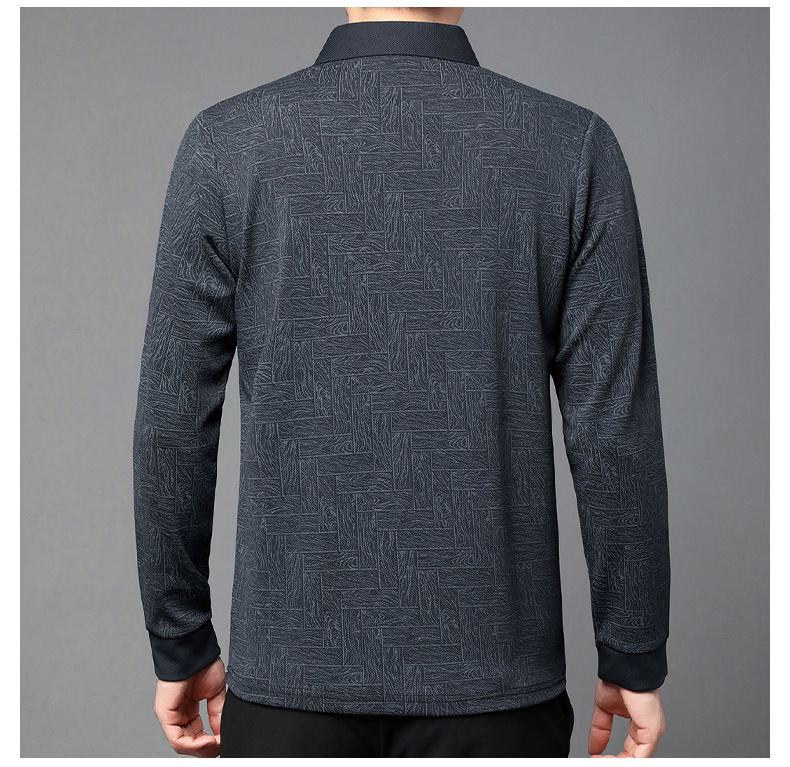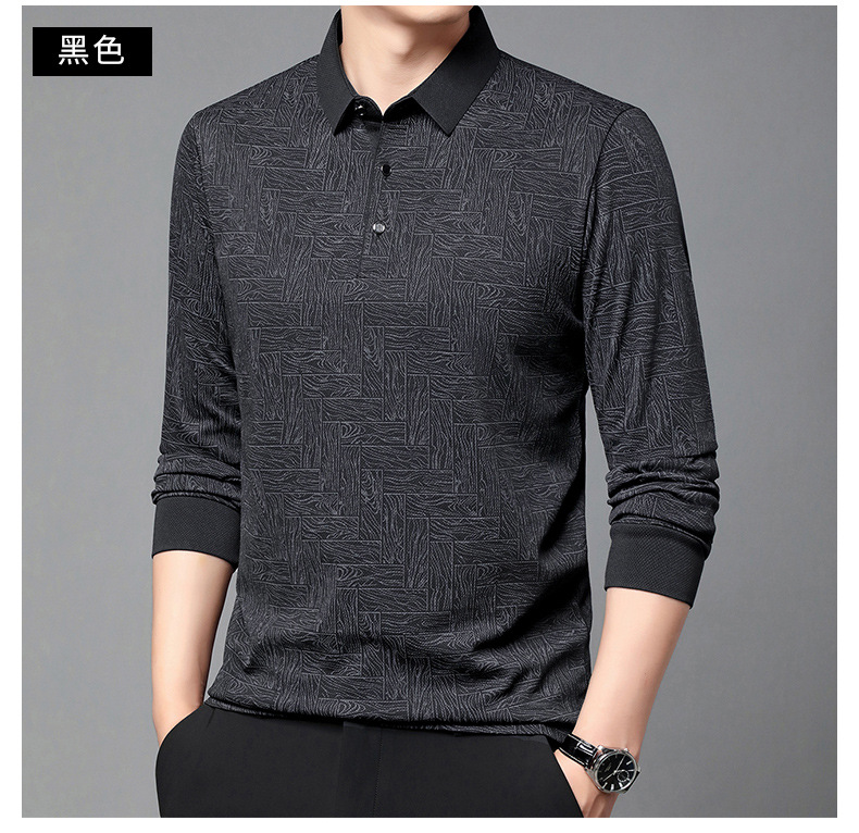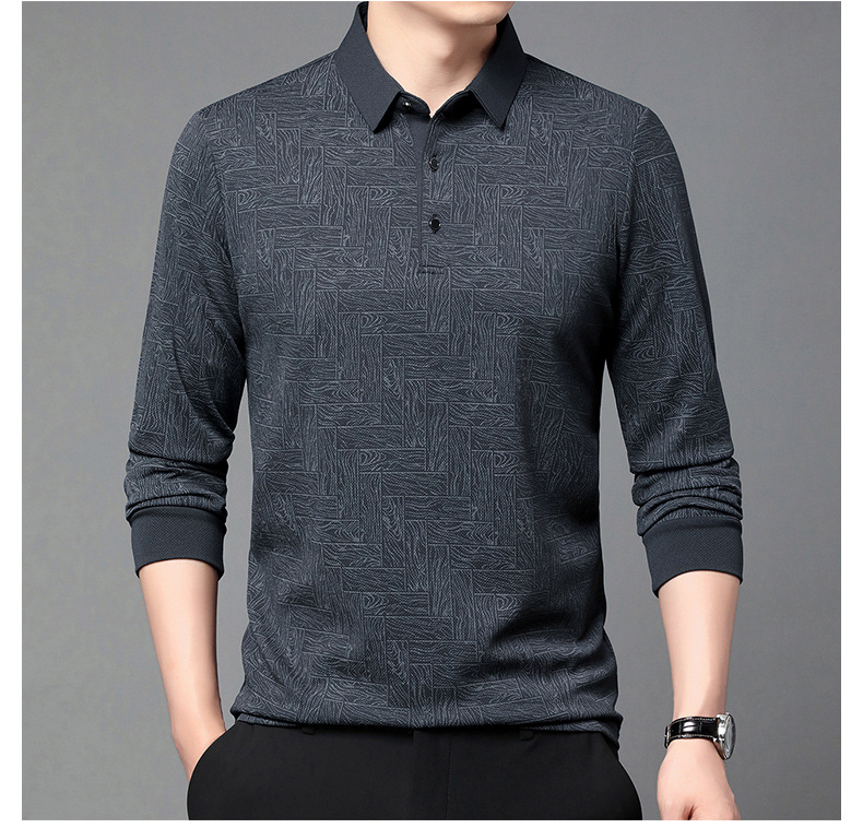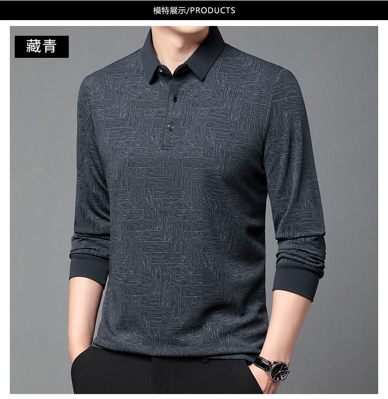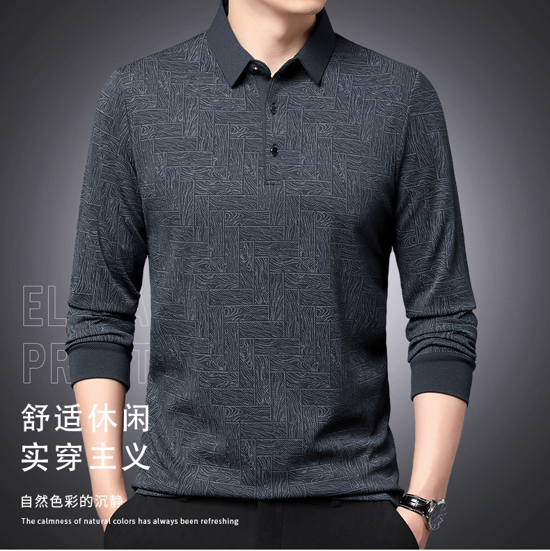 Осенняя новая длинная футболка-поло мужская модная принтованная универсальная повседневная с воротником для мужчин среднего возраста