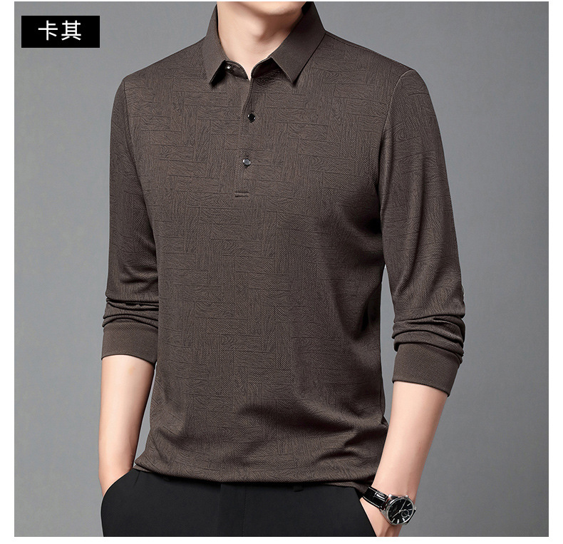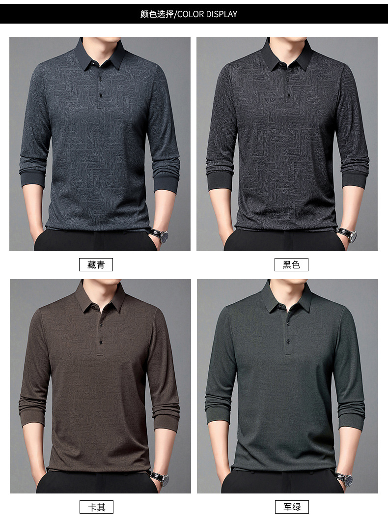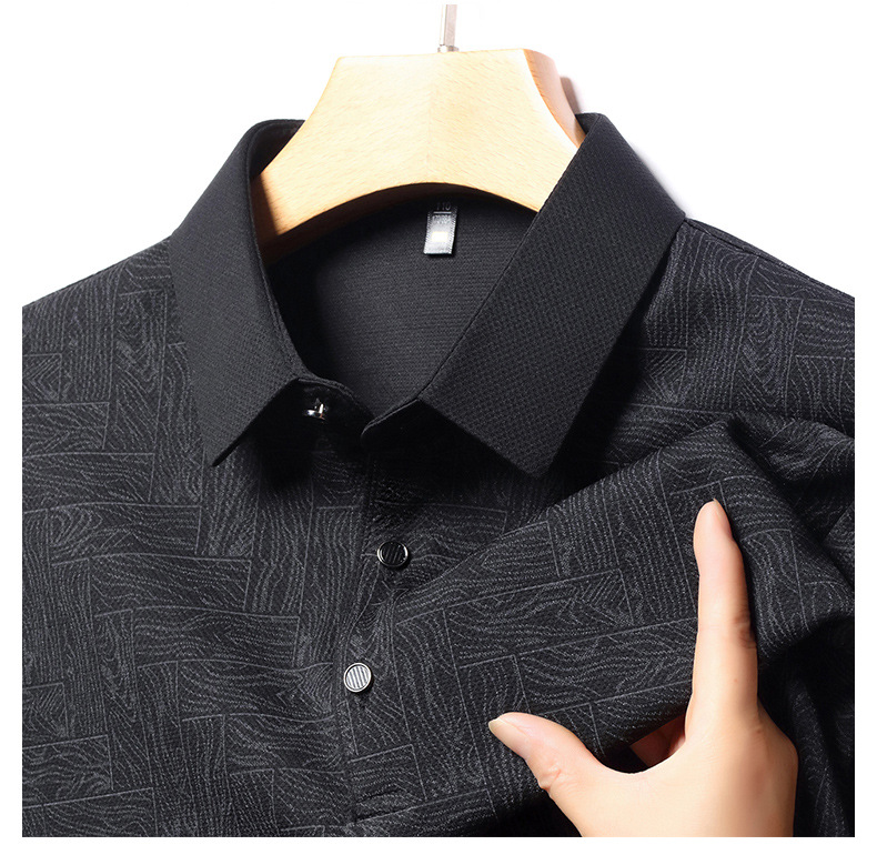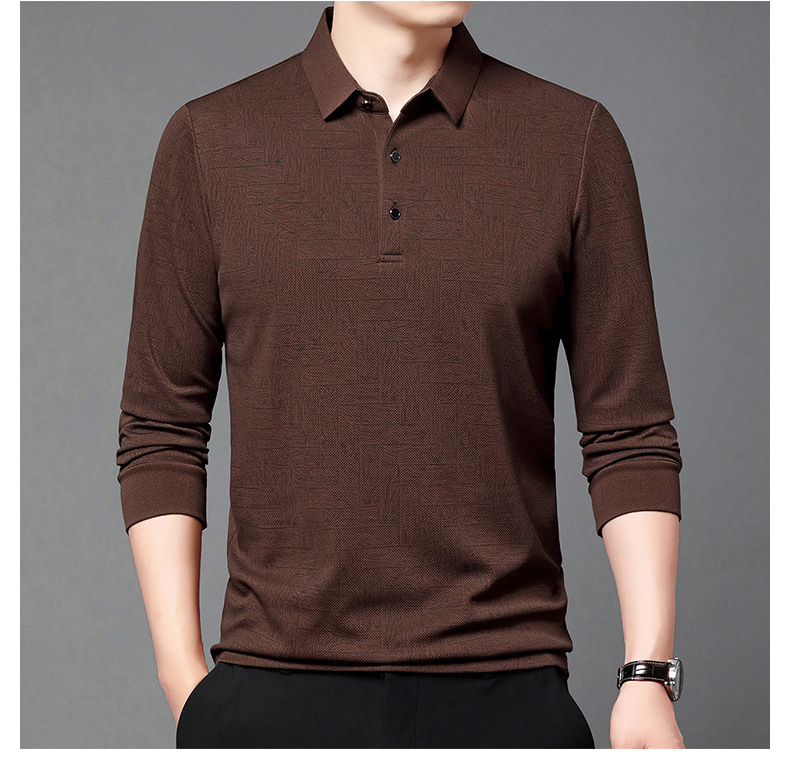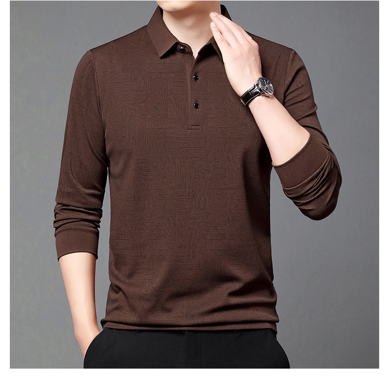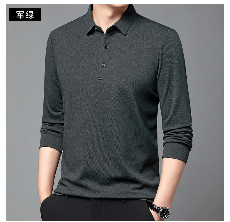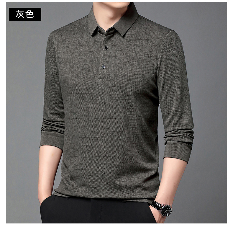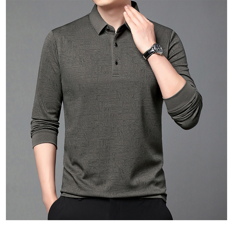 Осенняя новая длинная футболка-поло мужская модная принтованная универсальная повседневная с воротником для мужчин среднего возраста