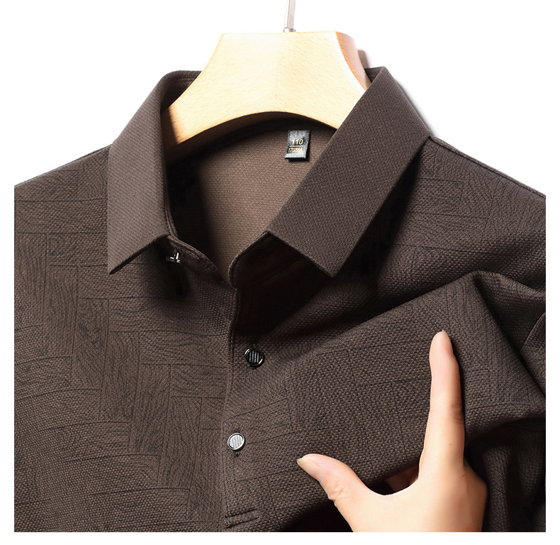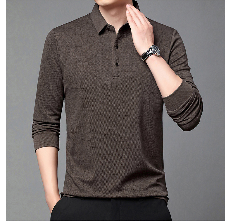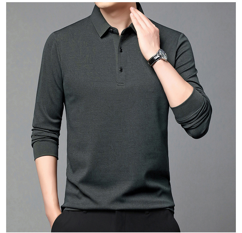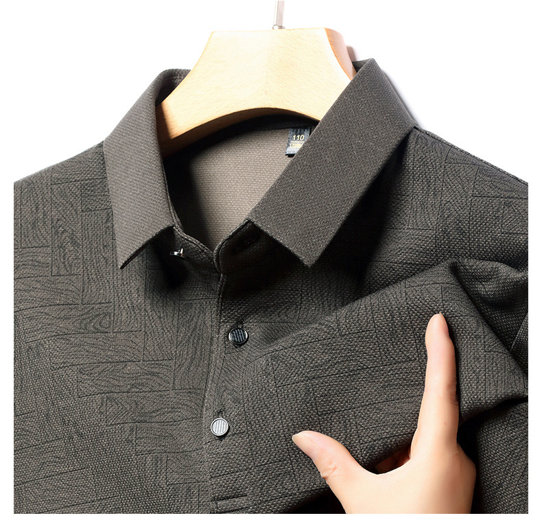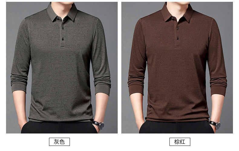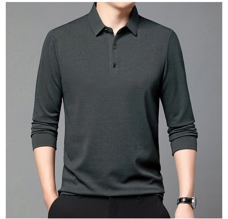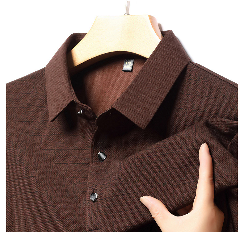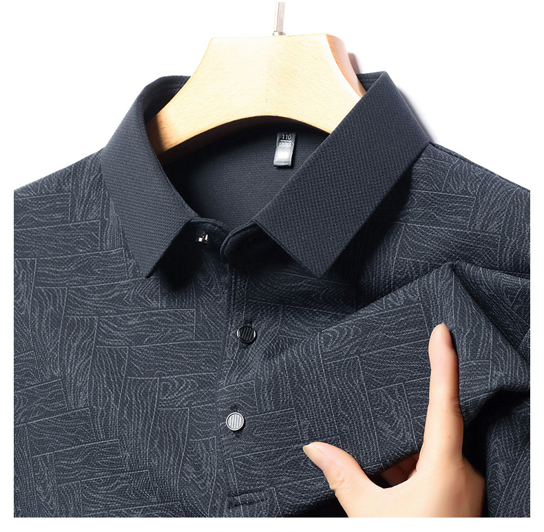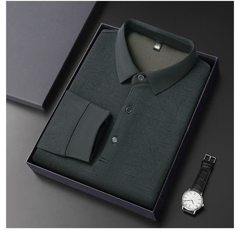 Осенняя новая длинная футболка-поло мужская модная принтованная универсальная повседневная с воротником для мужчин среднего возраста