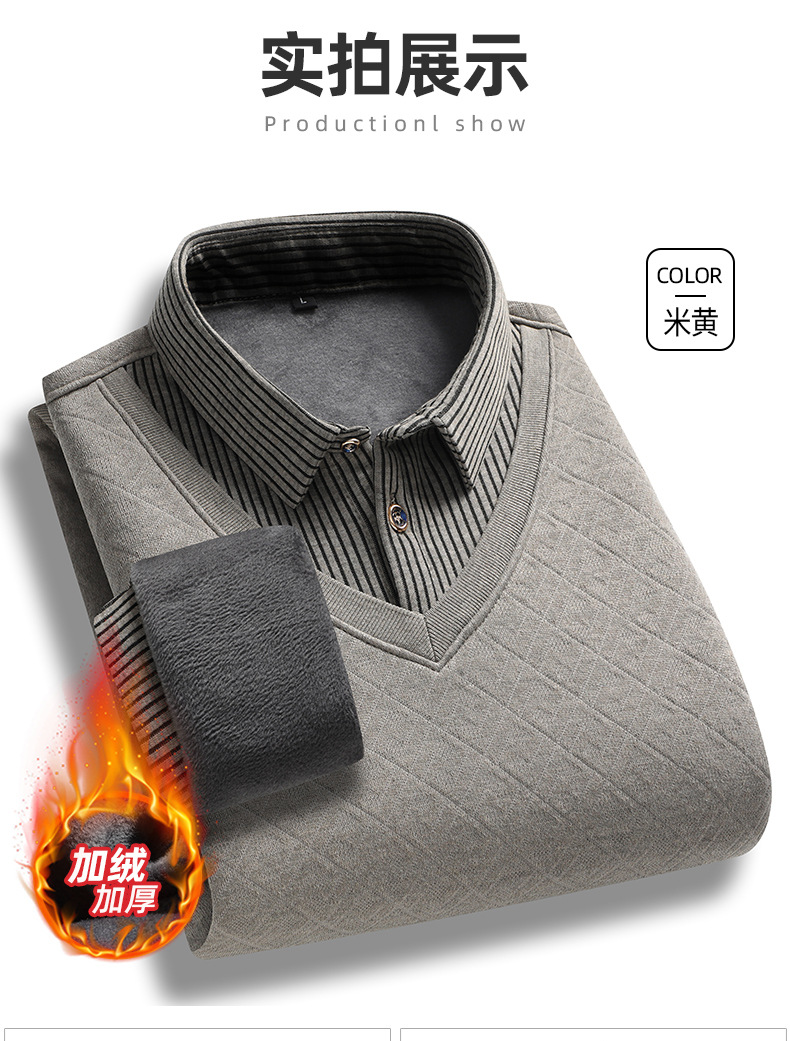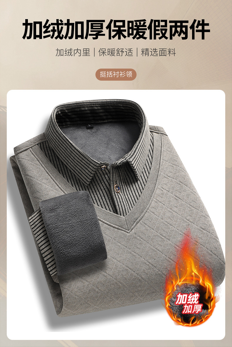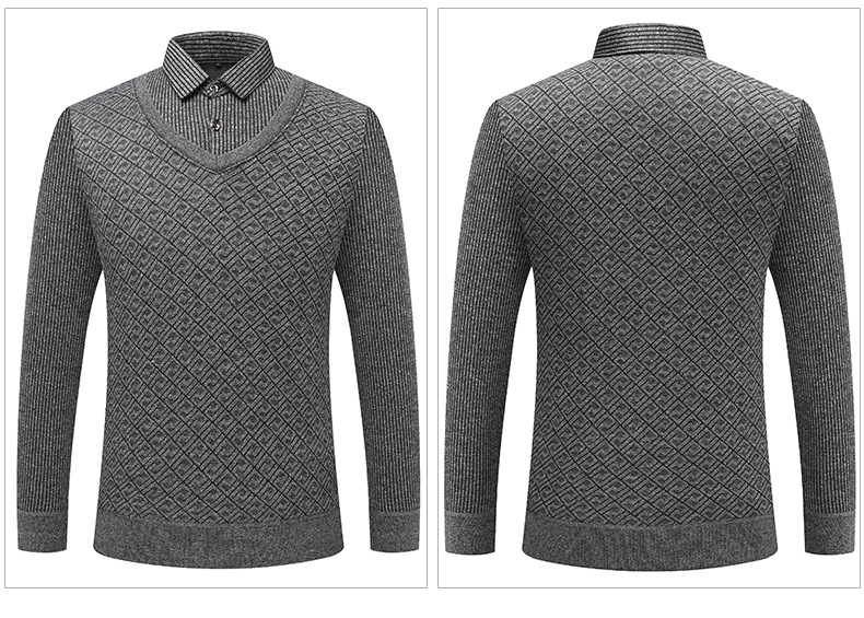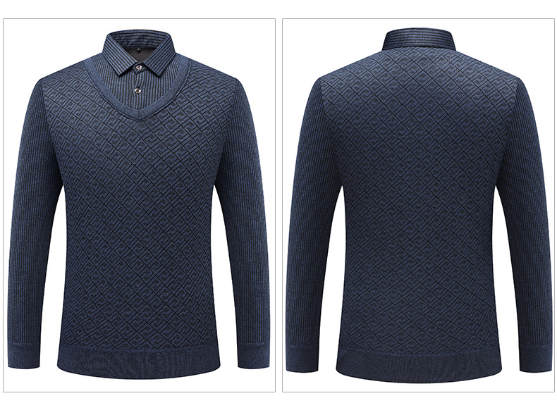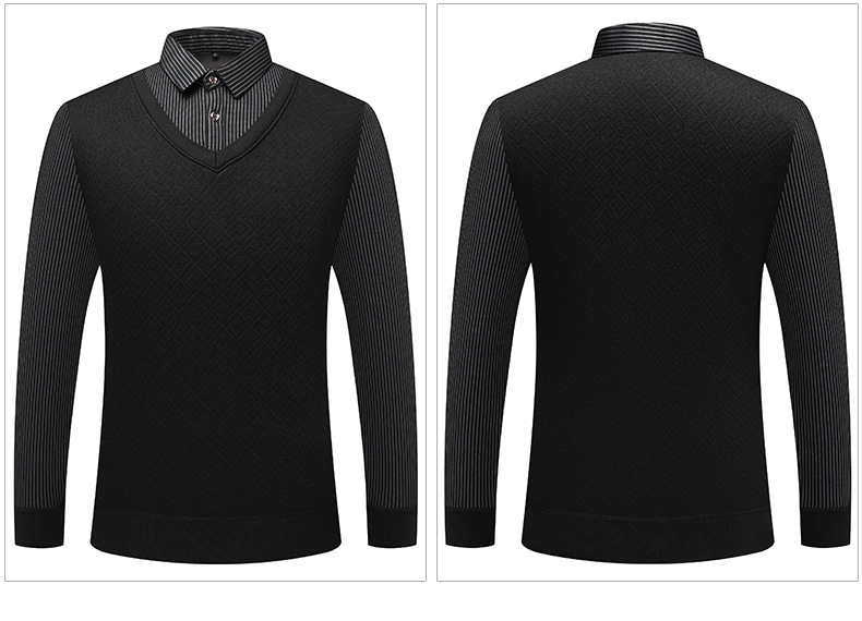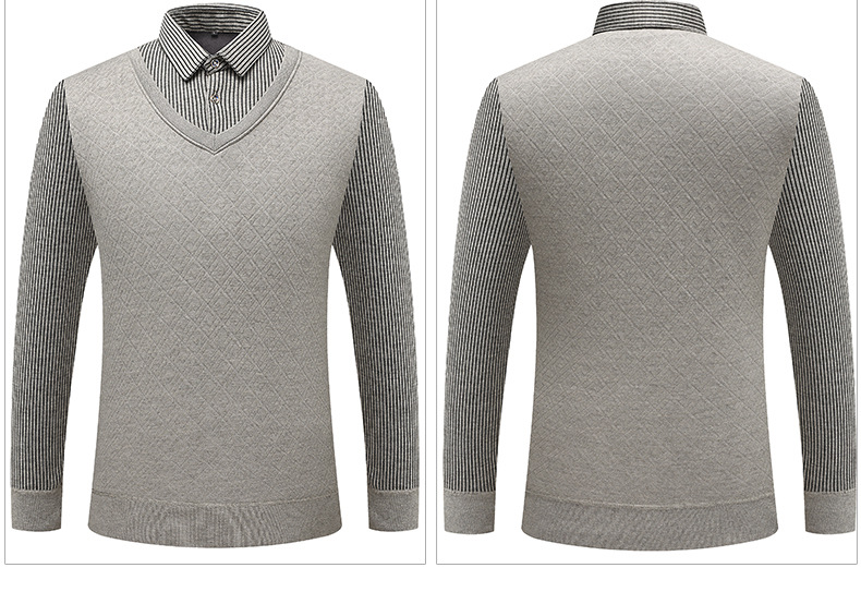 Новый теплый свитер с фальшивым комплектом, длинный рукав, осень-зима, повседневный, с полосками