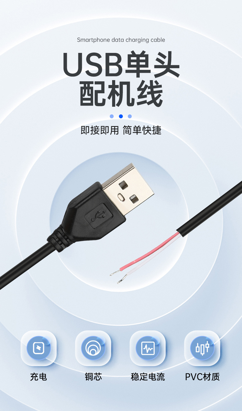 产品名称:USB单头配机线 2芯