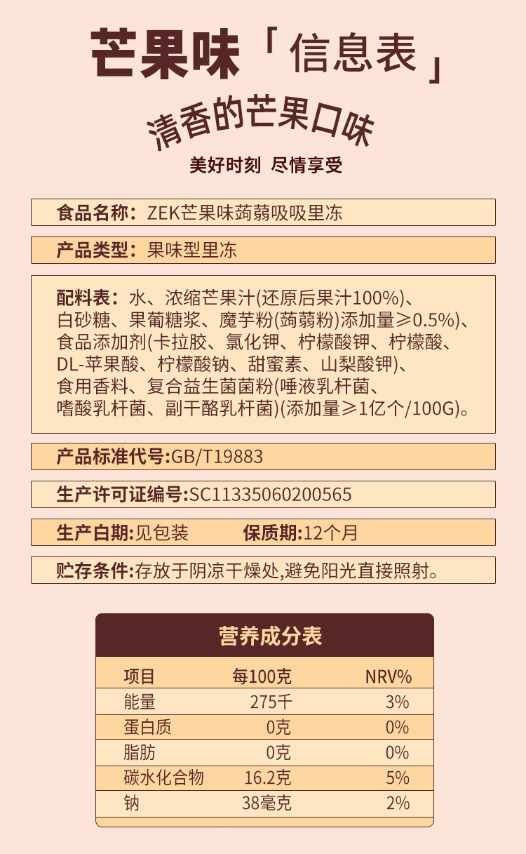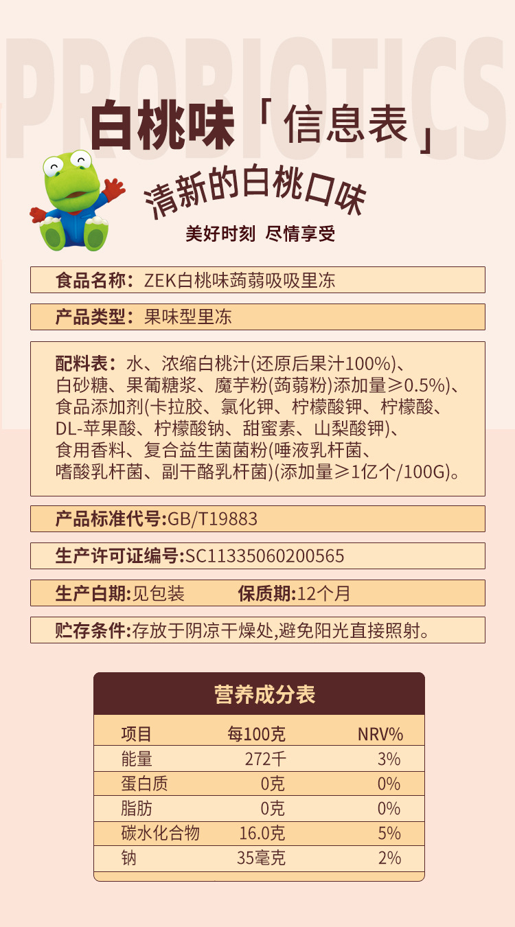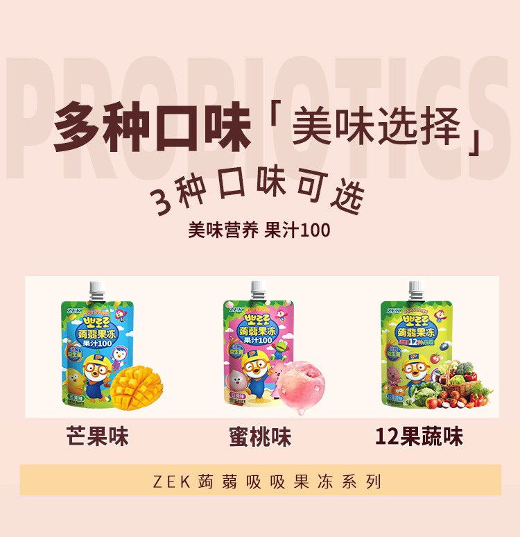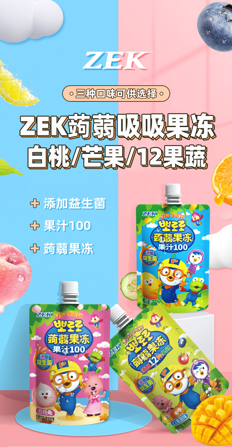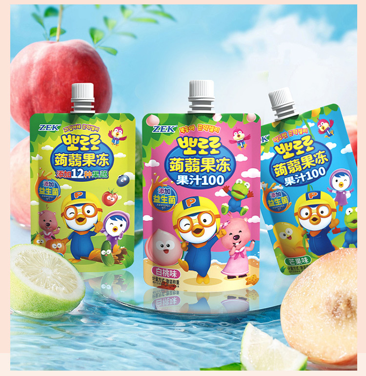 ZEK конняк-сосущее желе, сок, белый персик, фруктово-овощное, манговый вкус, добавление пробиотиков, закуски для детей