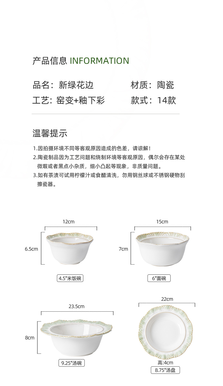 ![]() | 6" new green lace noodle bowl 36 pcs/box | Ordinary clothing | ¥15.9 / ≈ 193 ₽ | 999923 | 5540176516968 | |