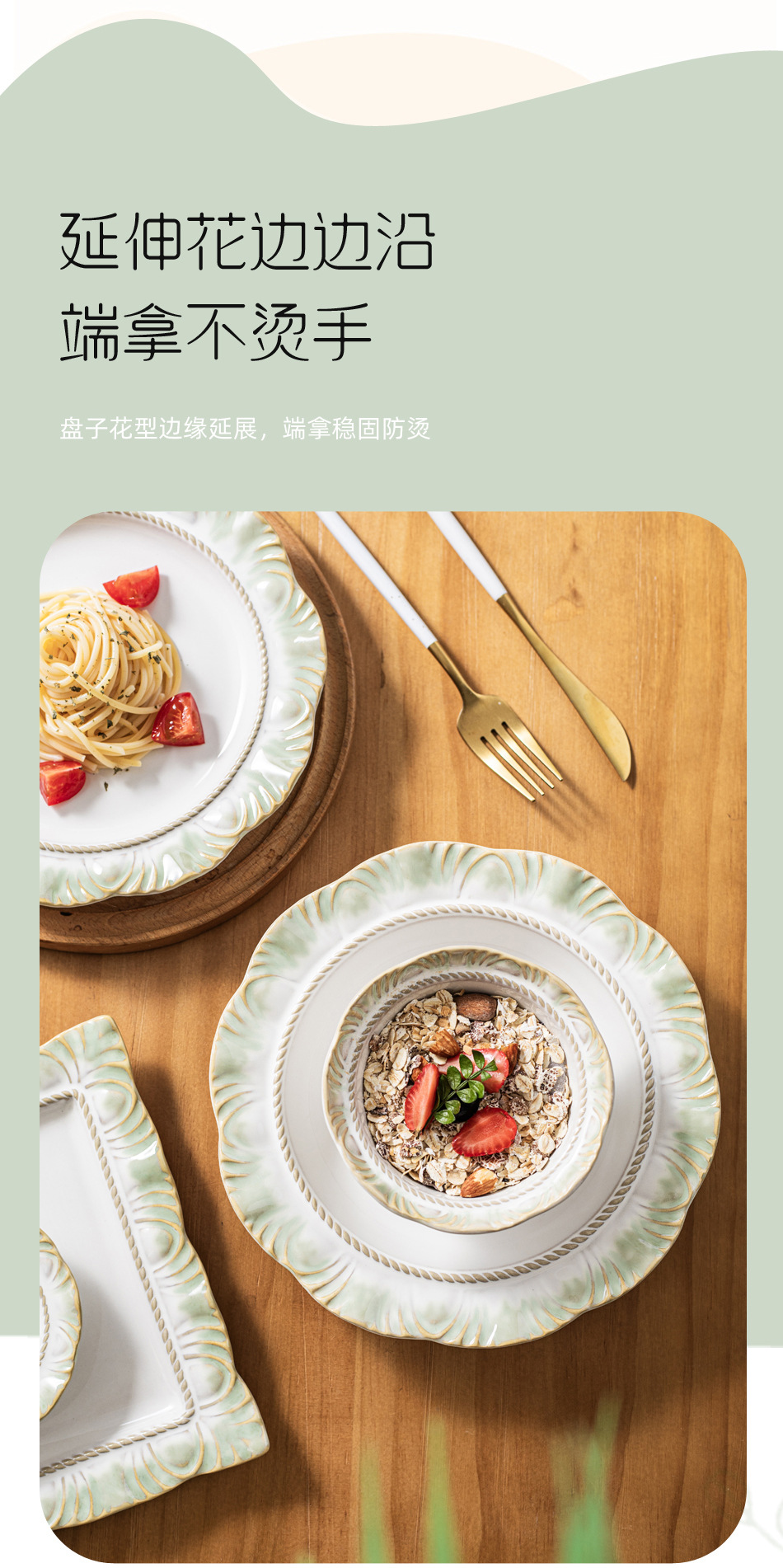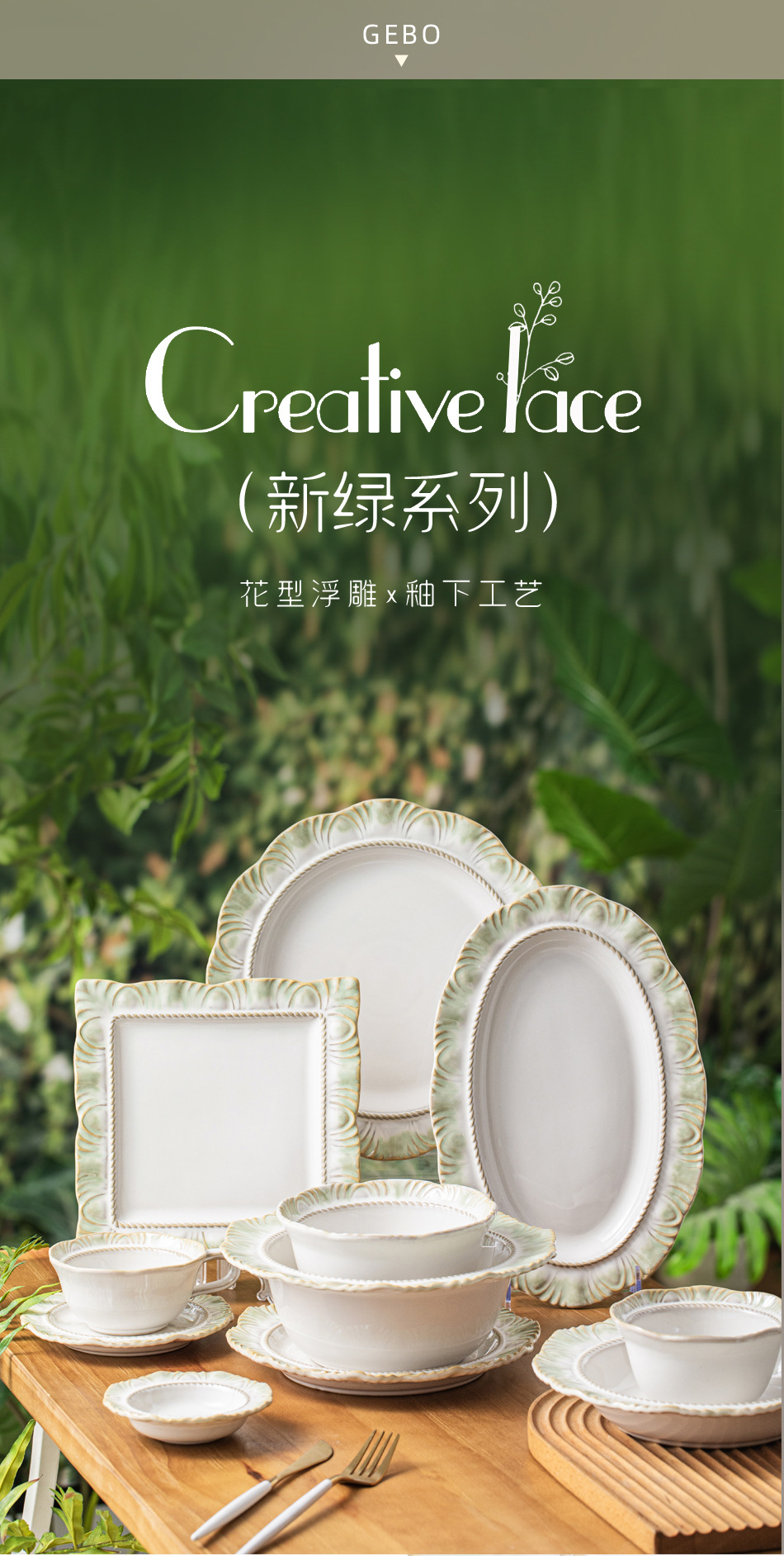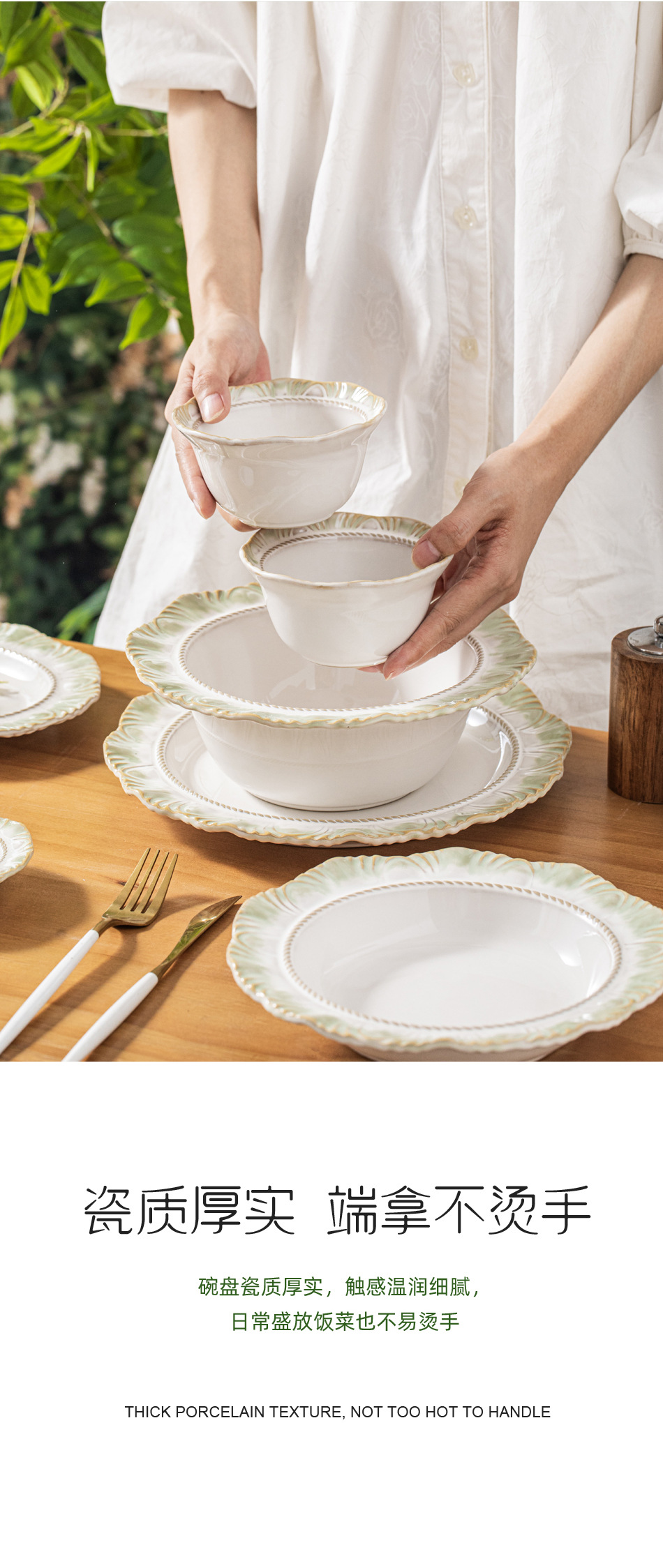 Набор посуды новой зеленой серии в стиле ins: керамическая посуда, рисовая миска, оптовая продажа ретро кружева