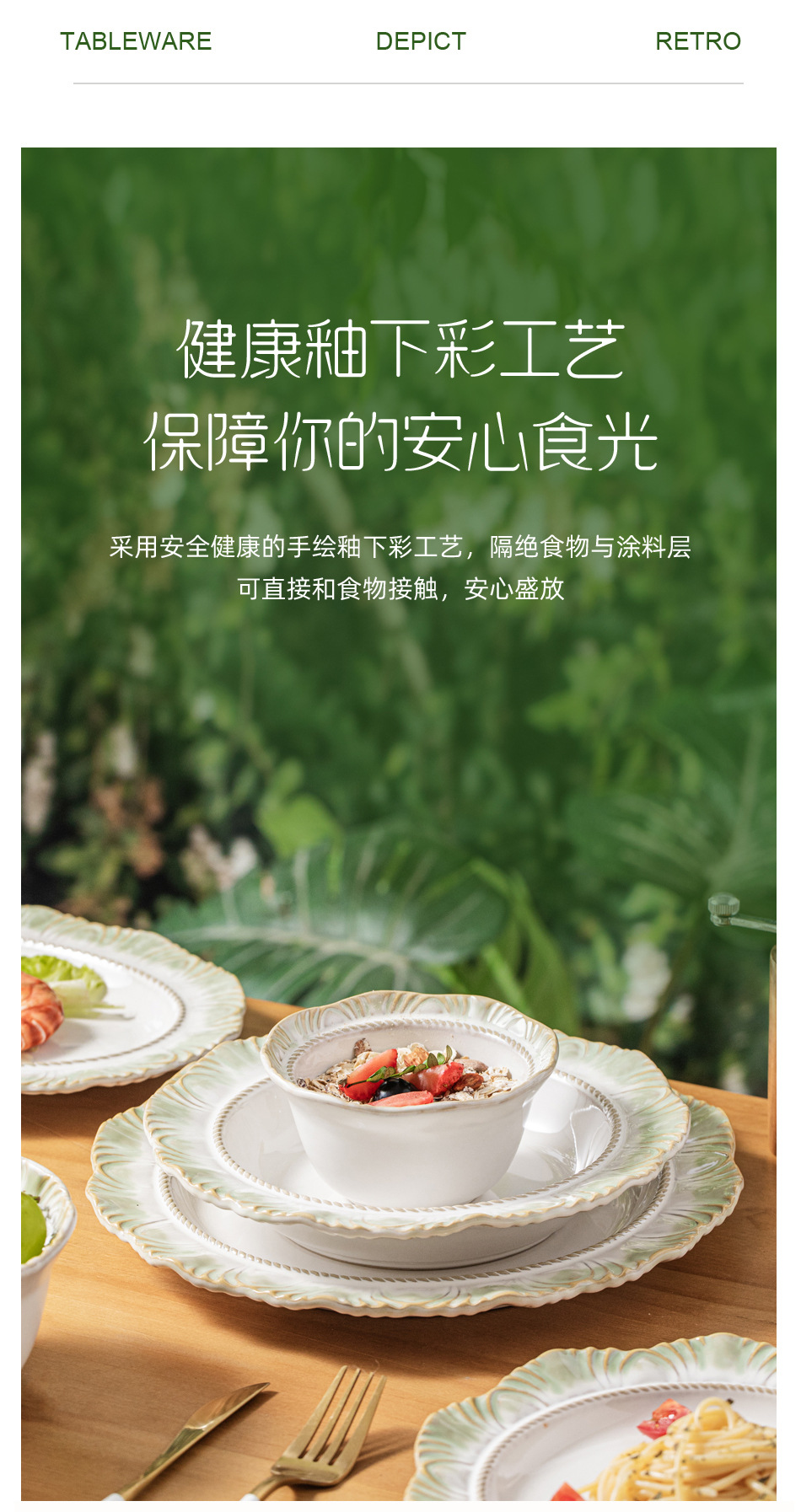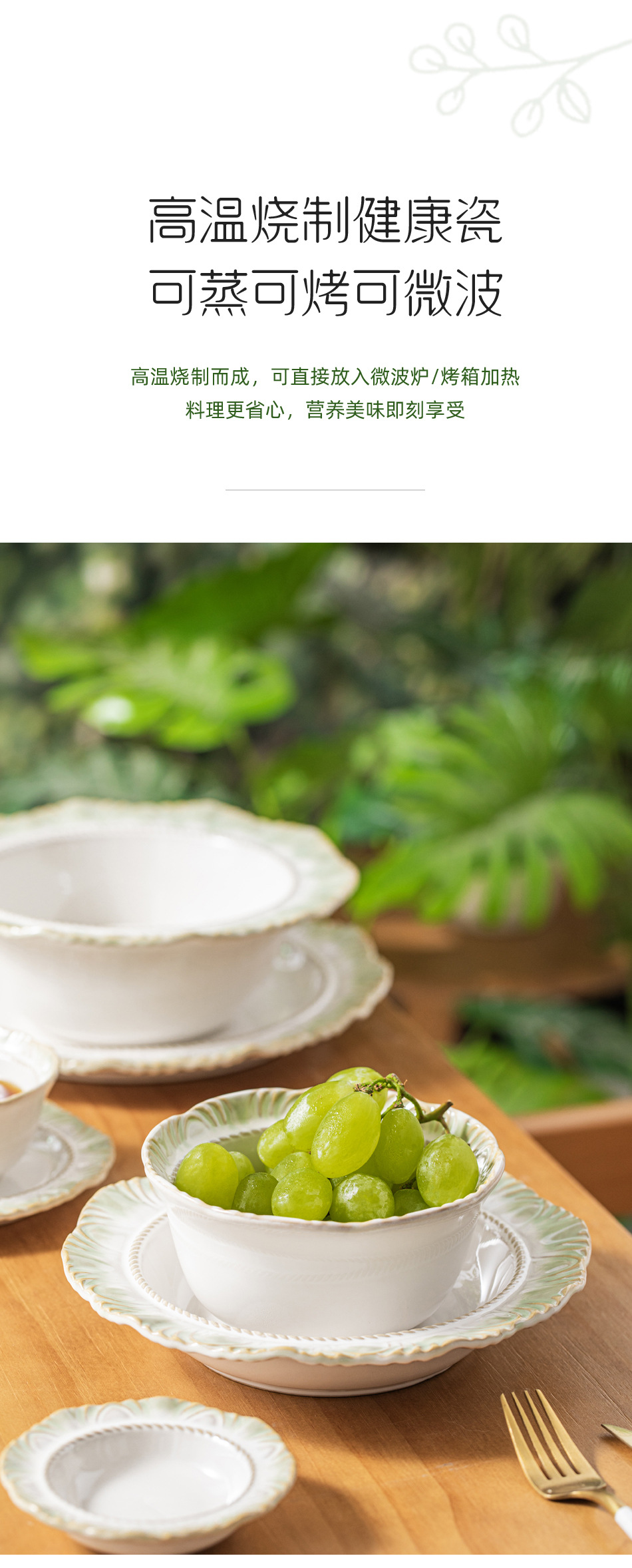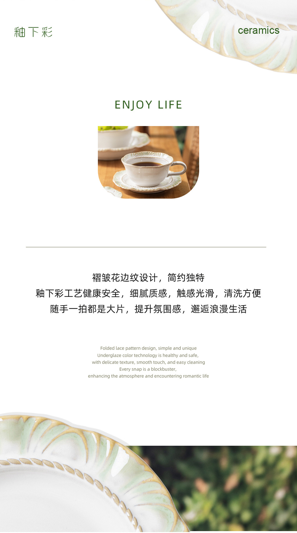 Набор посуды новой зеленой серии в стиле ins: керамическая посуда, рисовая миска, оптовая продажа ретро кружева