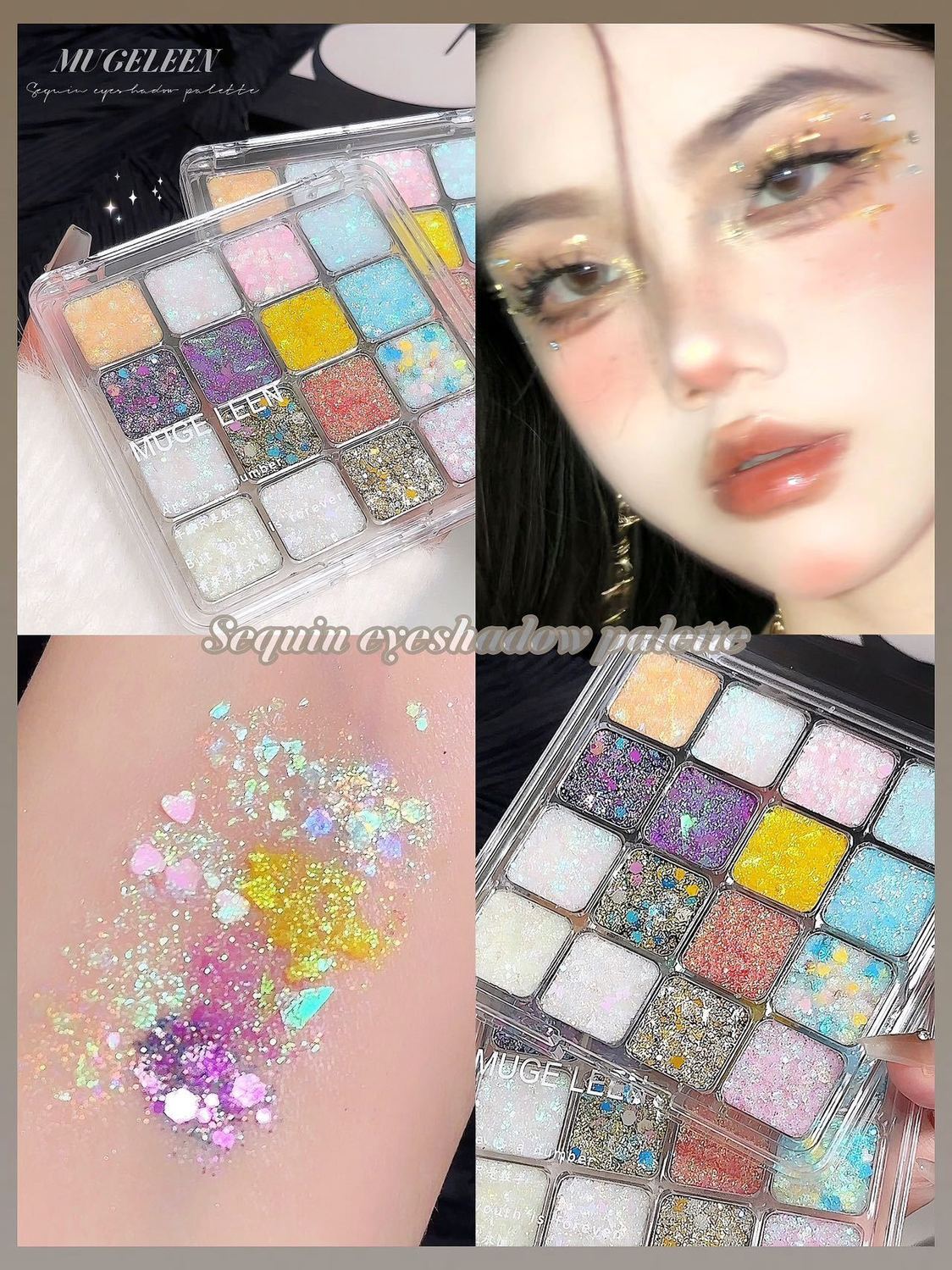 Новая палитра теней с блестками MUGELEEN, перламутровая матовая, без макияжа, мерцающий макияж русалки