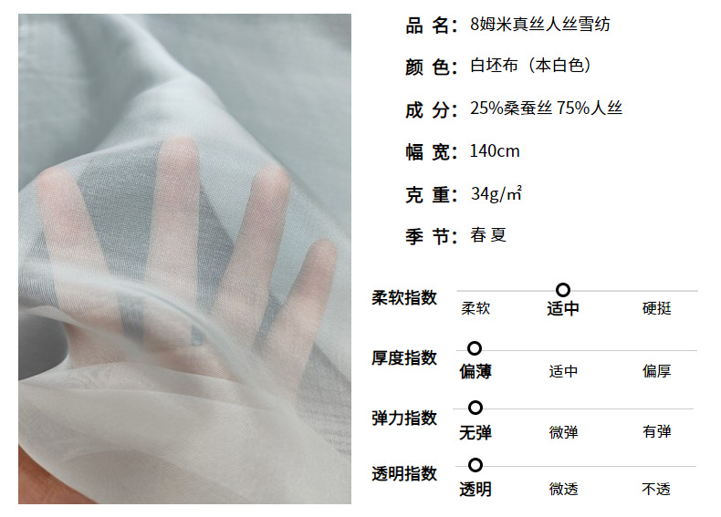 в наличии прозрачный 8 мм шёлковый диагональный шифон белая пряжа дизайнерская ткань летняя лёгкая бело-серая ткань фабрика