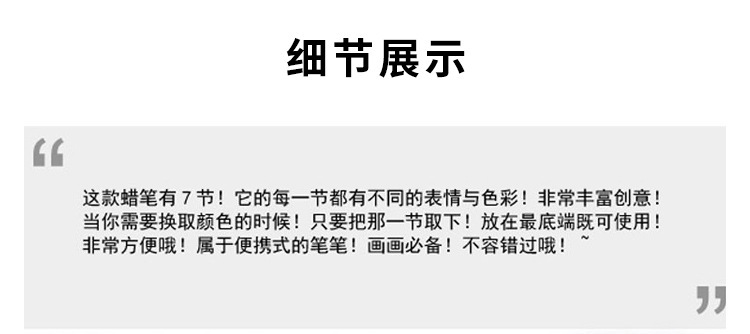 这款蜡笔有7节,它的每一节都有不同的表情与色彩;