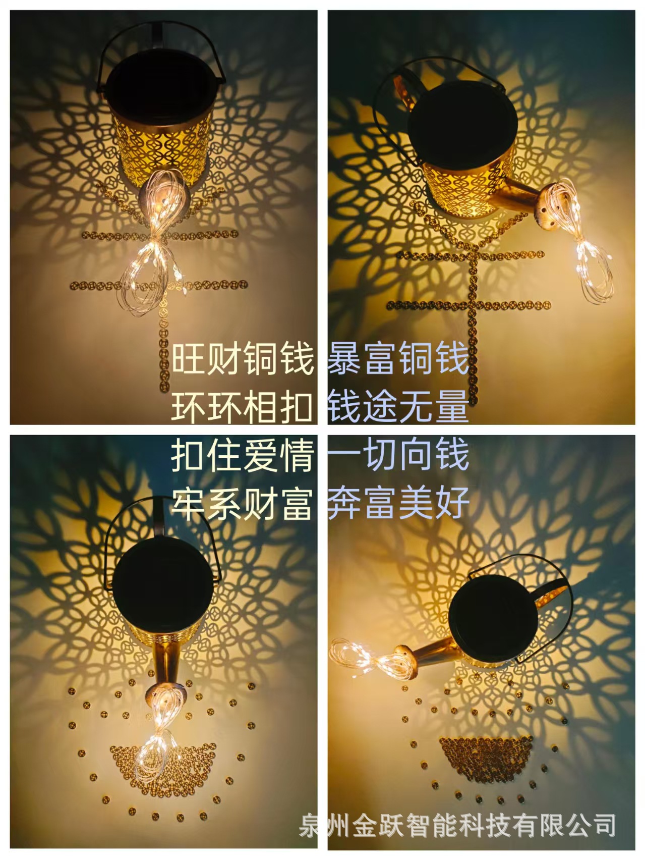Кросс-бордерная новая медная монета, солнечная лампа, железная полая уличная дождевое украшение, сад, двор, газон