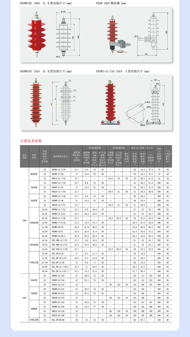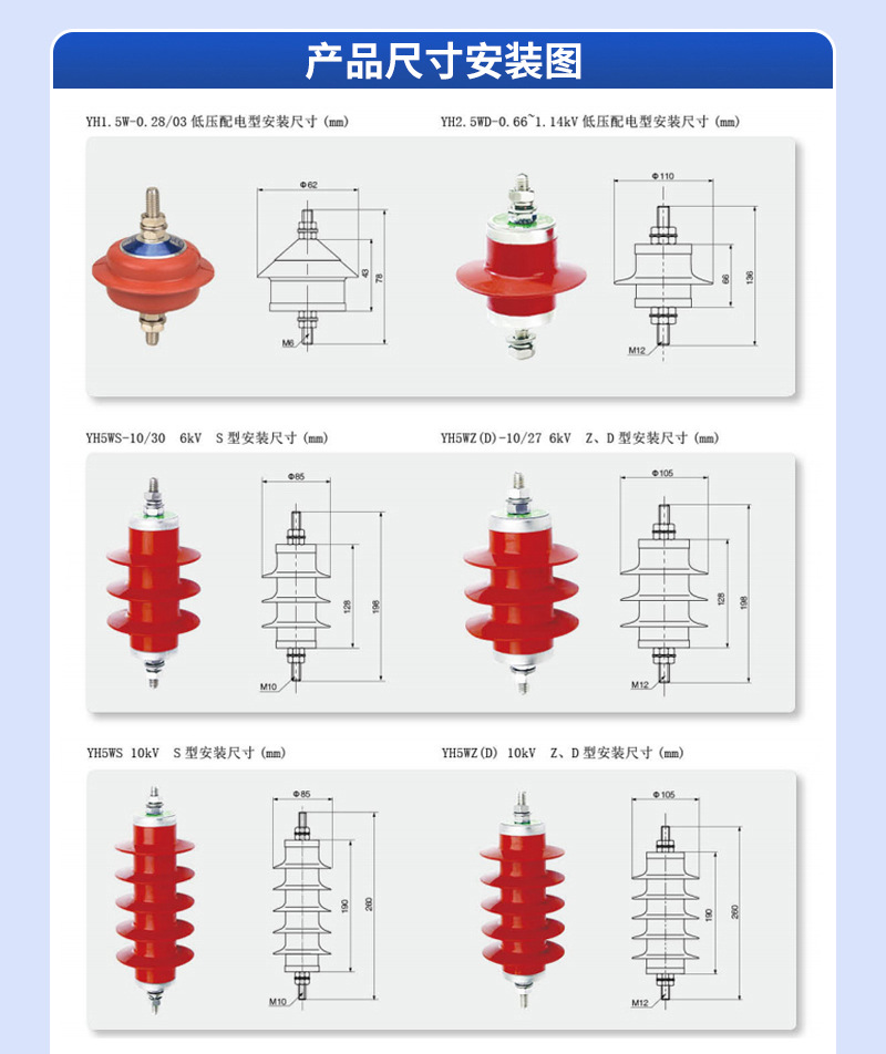 Производитель оптовая продажа силиконовый резиновый Yh1.5W-0.28/1.3 уличный высоковольтный распределительный шкаф композитный оксид цинка молниеотвод