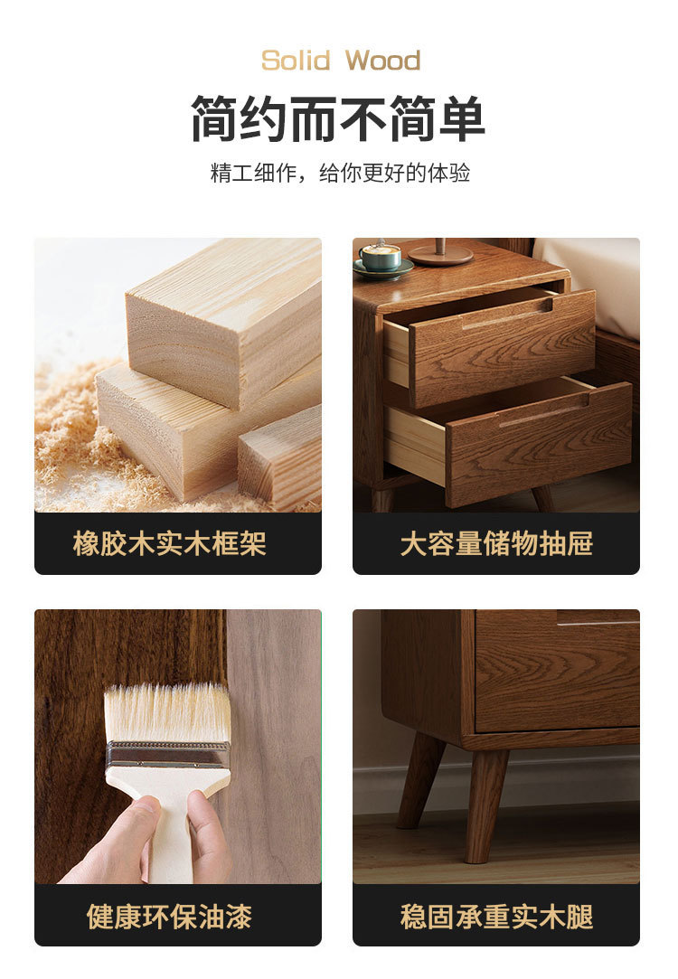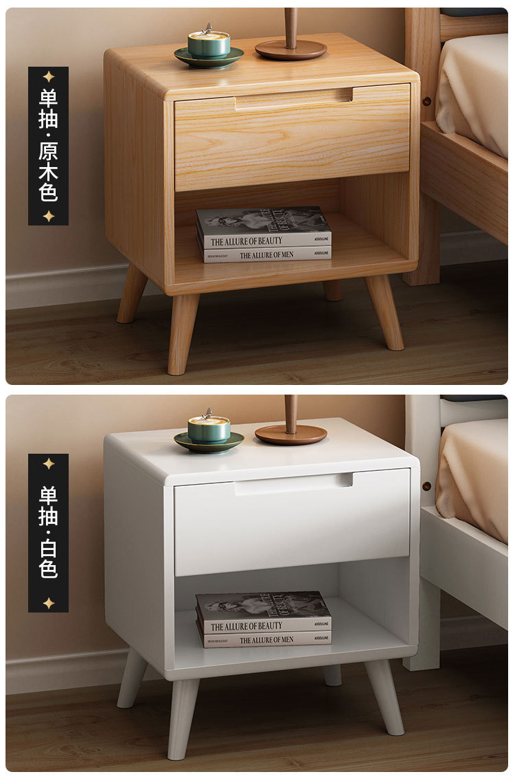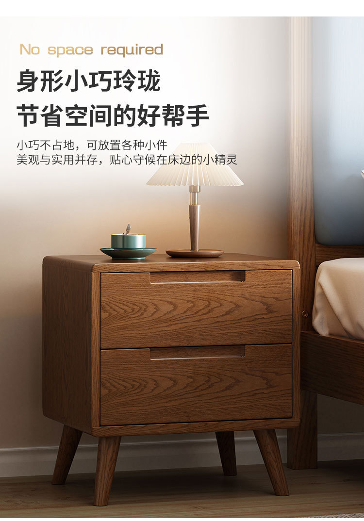 北欧全实木三抽床头柜橡木原木收纳柜现代简约卧室储物柜斗柜整装