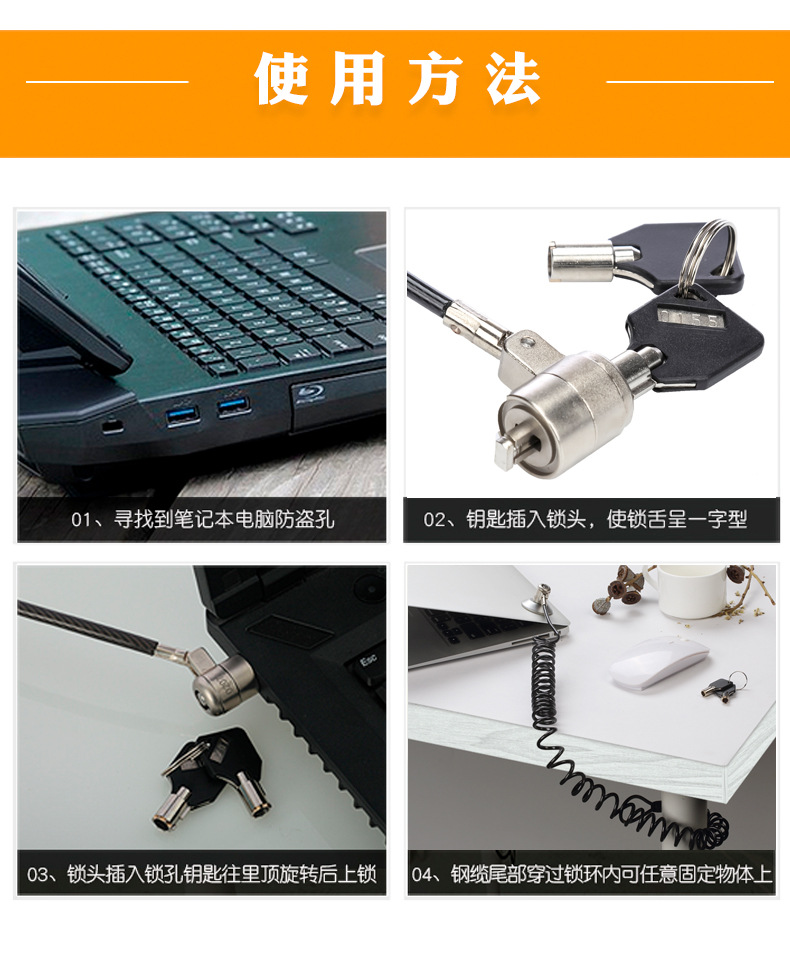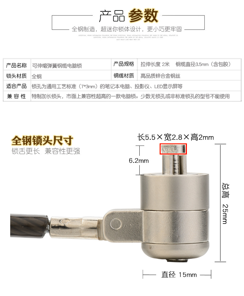 Пружинный стальной кабель для ноутбука