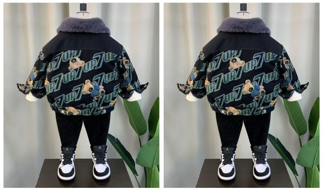 Мальчиковая вельветовая куртка в корейском стиле, серый жакет с медведем, верхняя одежда для детей