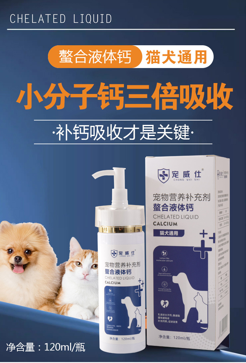 Chelated жидкий кальций Chongwei Shi, облегчение суставов, добавка кальция для собак с хондроитином, вкусная и легко усваиваемая