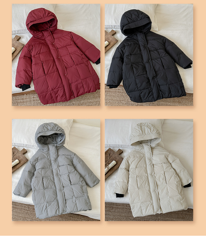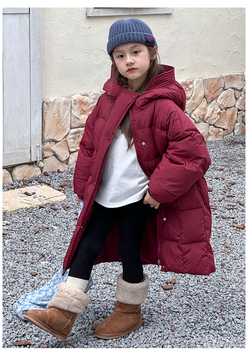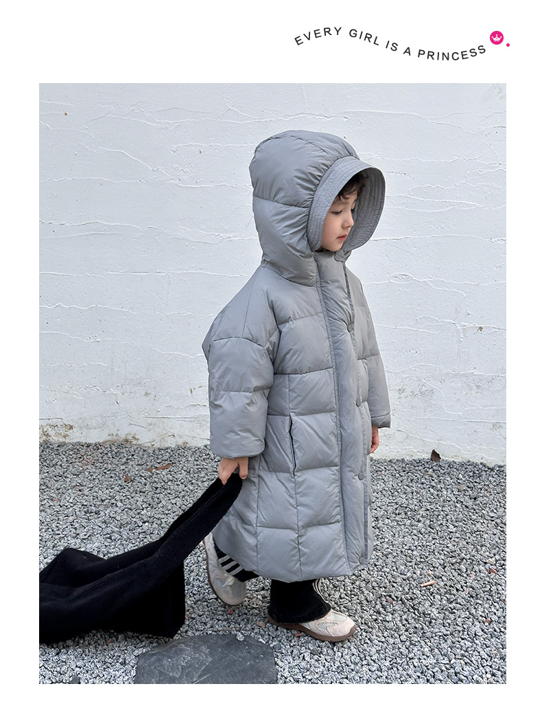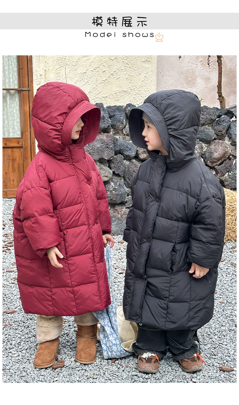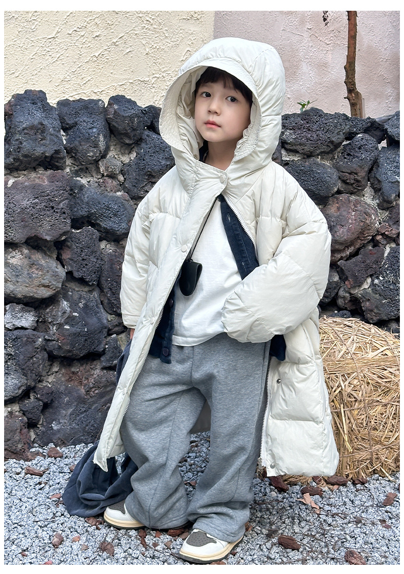 Детская зимняя полудлинная пуховка 2024, новый западный стиль, куртка с капюшоном, свободная, утолщенная, для мальчиков и девочек