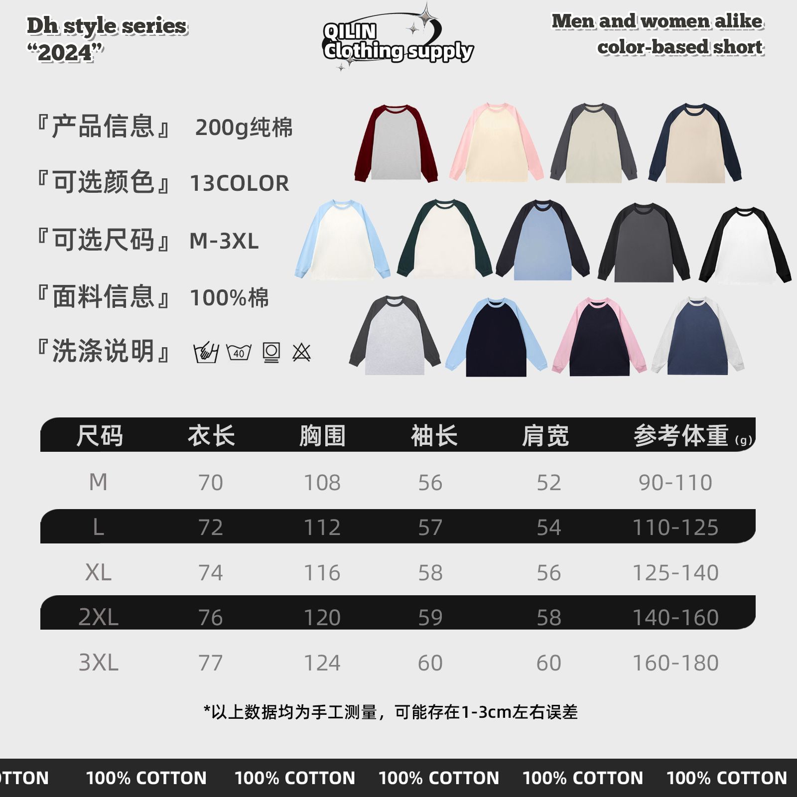 200 грамм 21 хлопка американский стиль реглан контрастная длинная футболка базовая круглый вырез комплект внутри куртки модная кросс-бодер