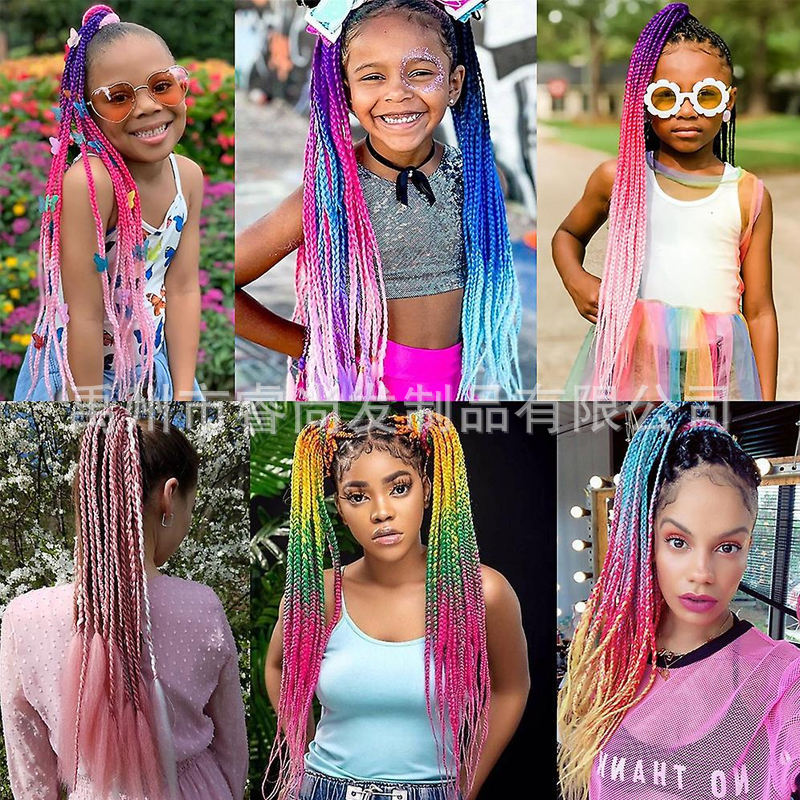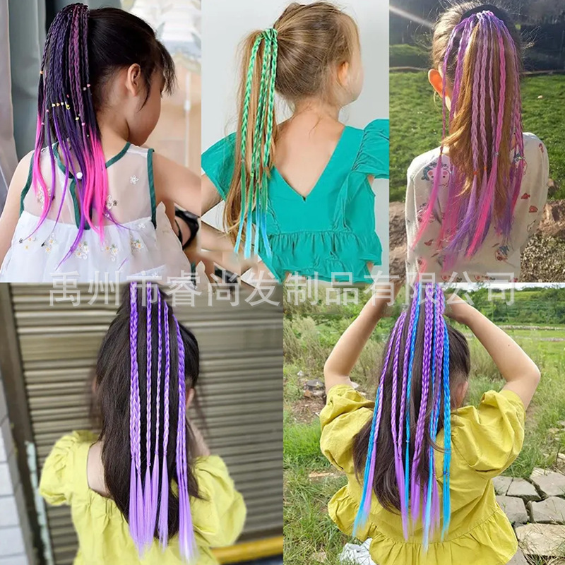 Цветной парик с косами для женщин и девочек, для выступлений с хвостом