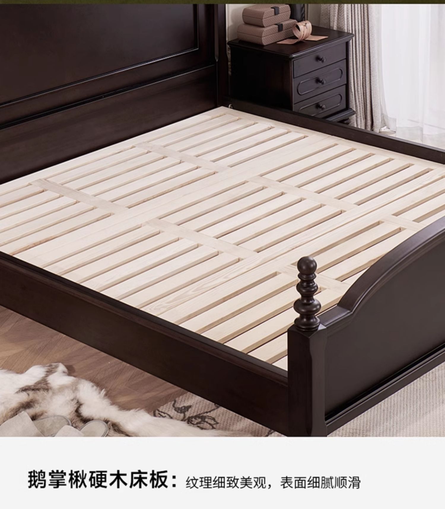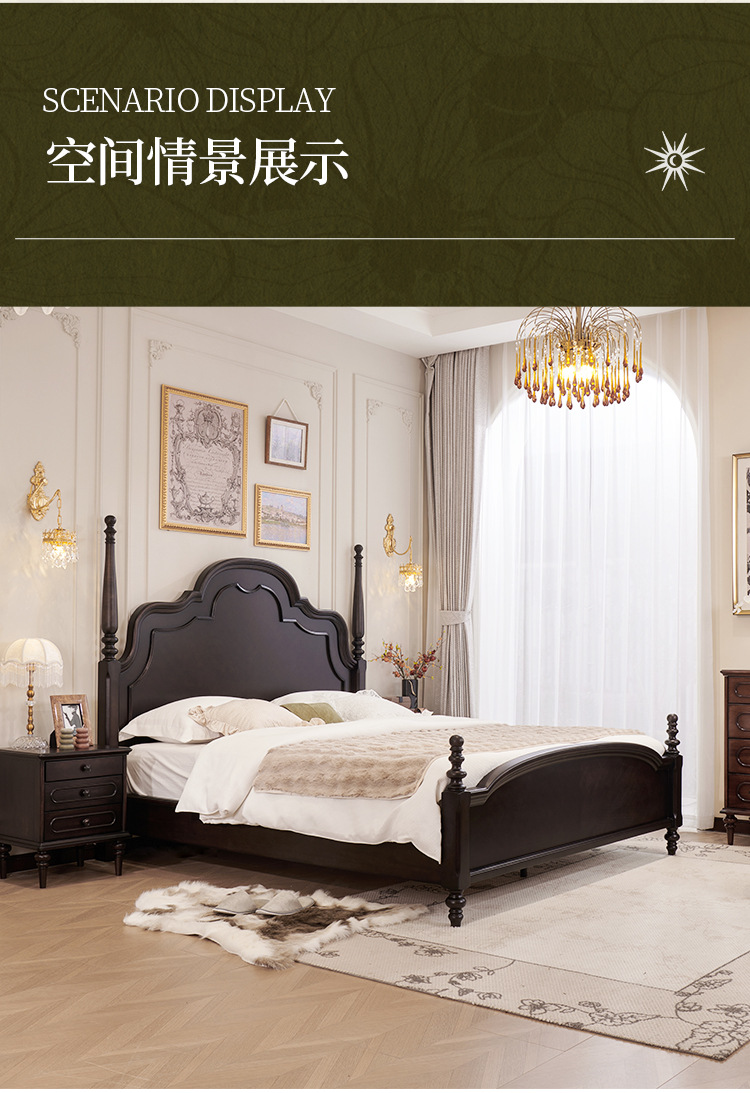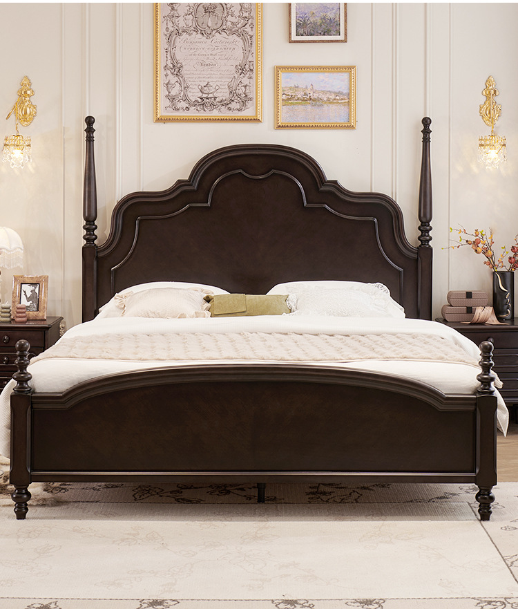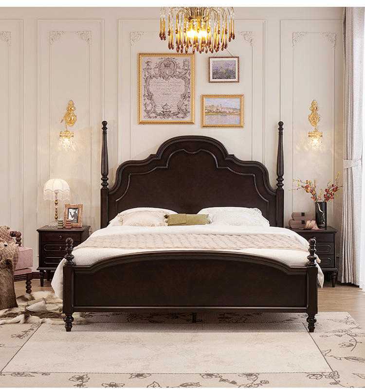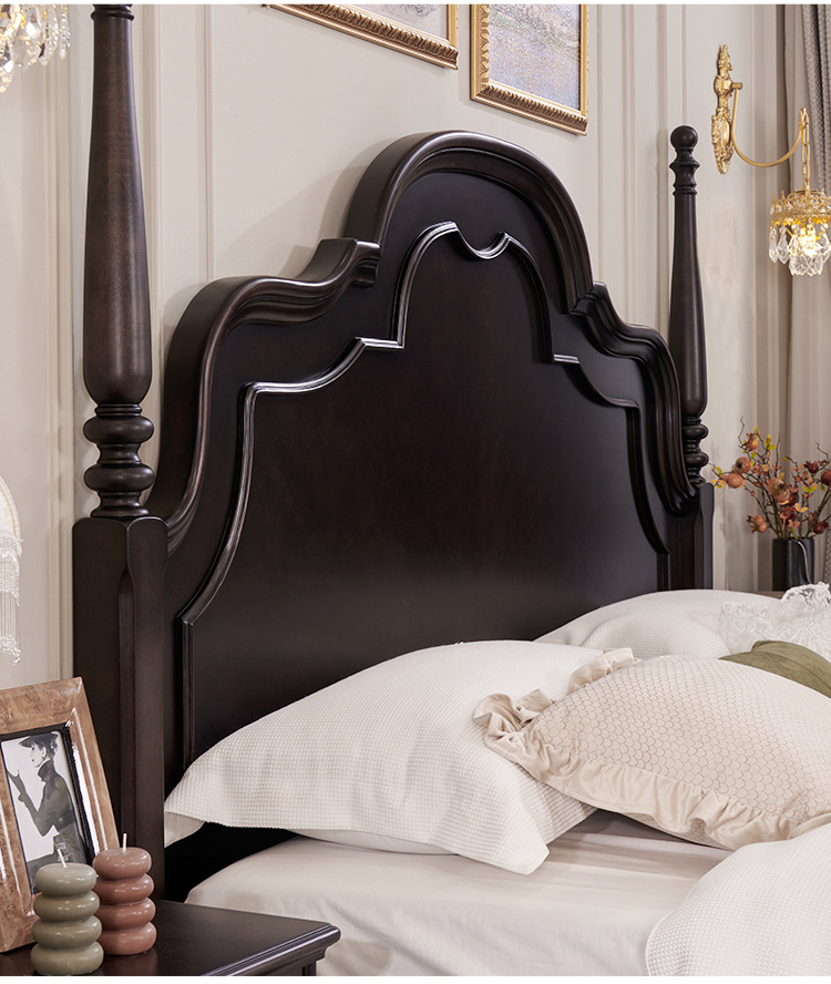 Кровать двойная из массива дерева в средневековом стиле, черная, с римскими колоннами, французская оригинальная кровать Анна