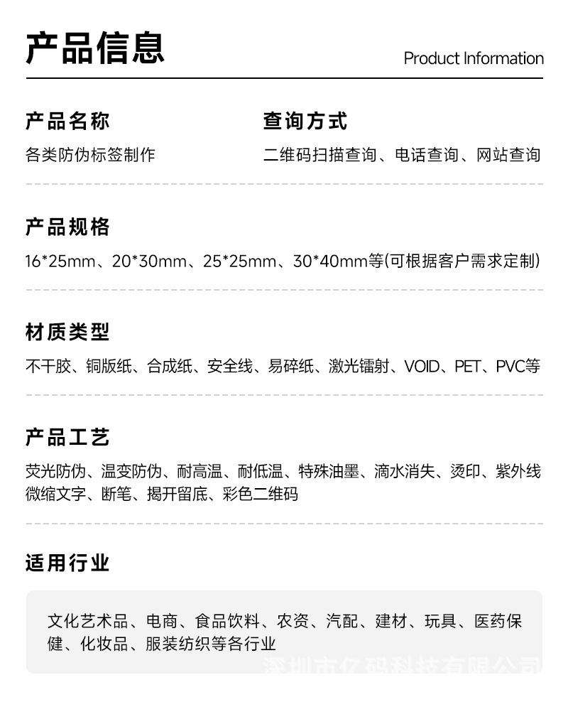 Производитель из Шэньчжэня, индивидуальная настройка антиконтрафактных ярлыков, один код на один товар, антиконтрафактная наклейка, печать товарного знака, QR-код, настройка антиконтрафактного логотипа