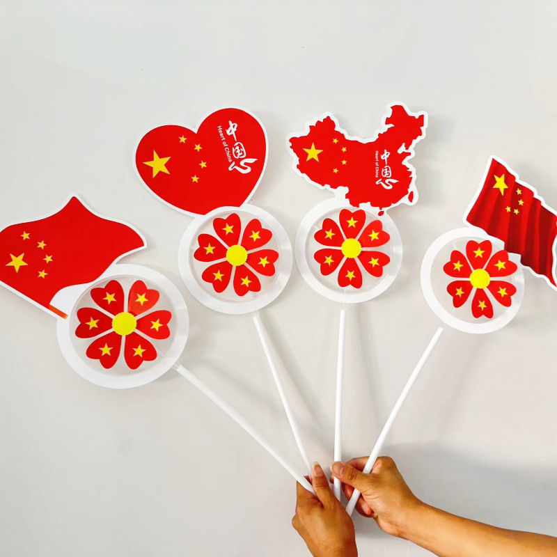Горячая распродажа красной флаговой мельницы, одиннадцать национальных дней, двойная шести-лепестковая мельница, игрушка для детей, оптовая продажа