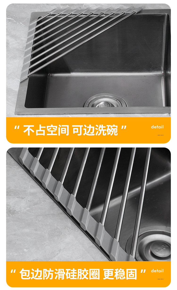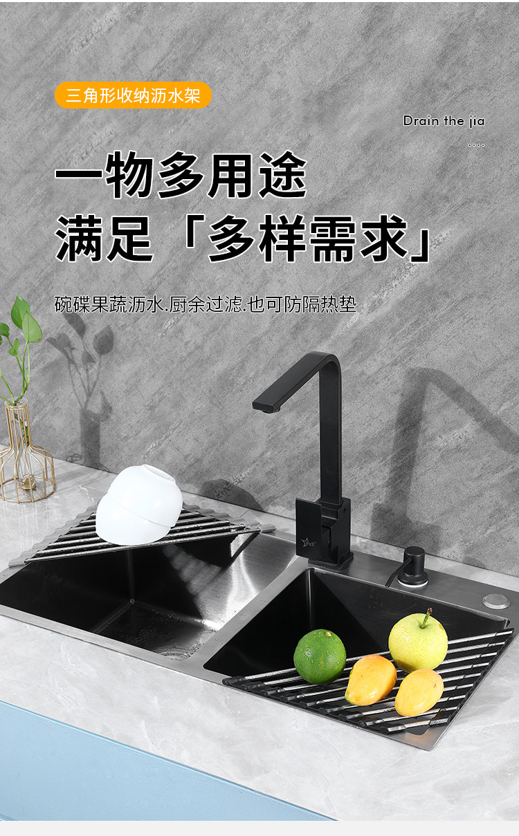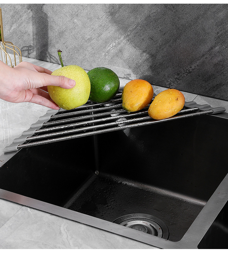 Складная дренажная решетка из нержавеющей стали для фруктов и овощей, дренажная корзина для посуды на кухне, многофункциональный дренажный ролик