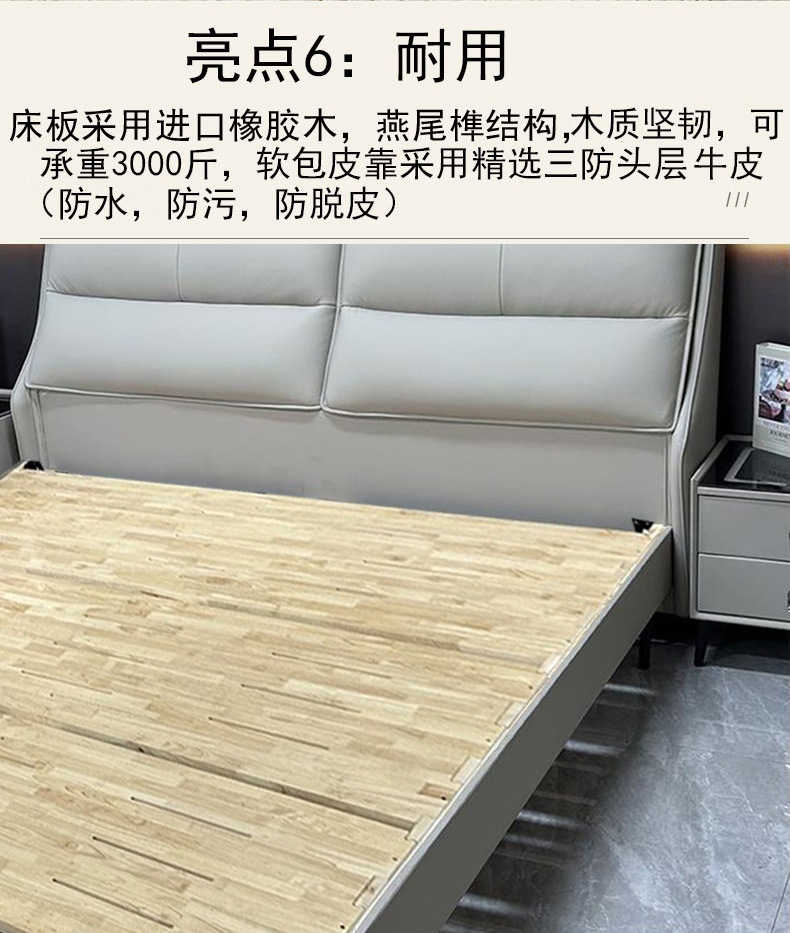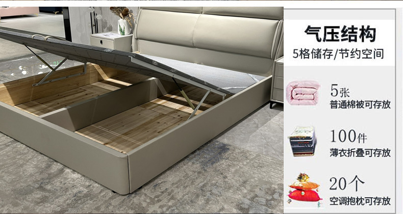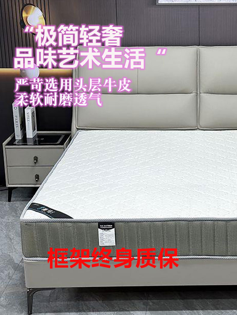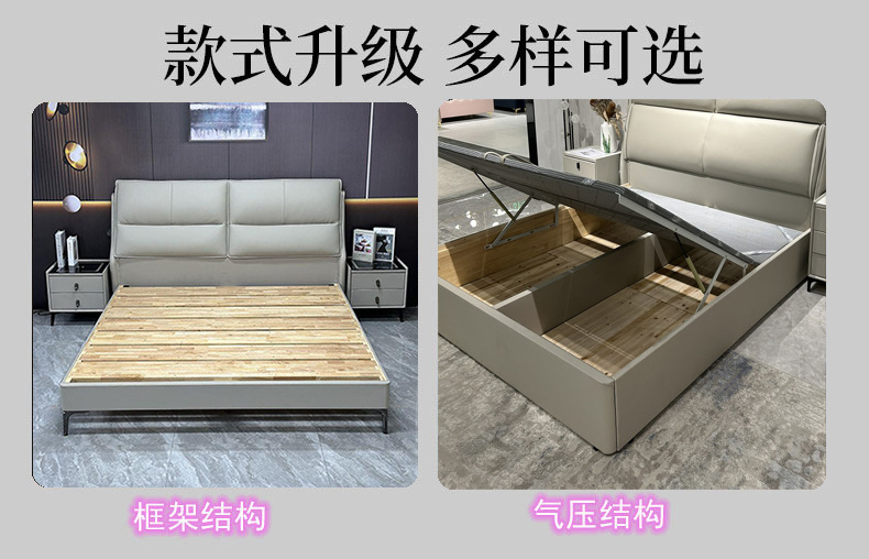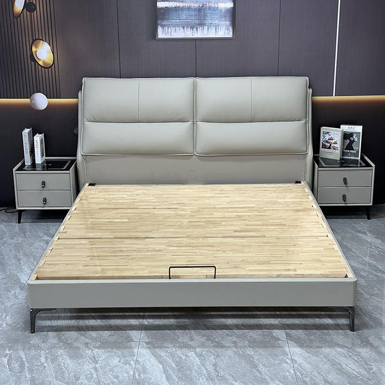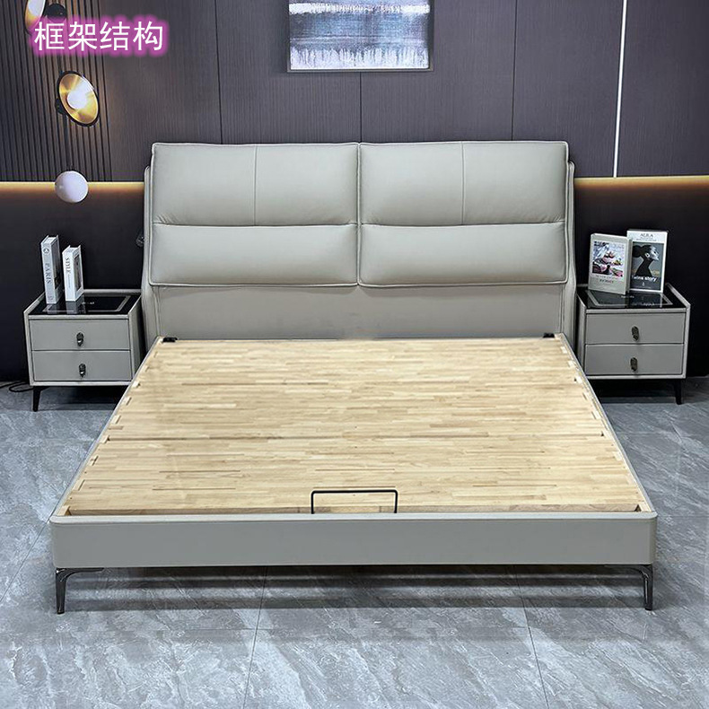 Итальянская стильная легкая роскошная минималистичная двуспальная кожаная кровать, минималистичная мягкая кровать, современная минималистичная, из дуба