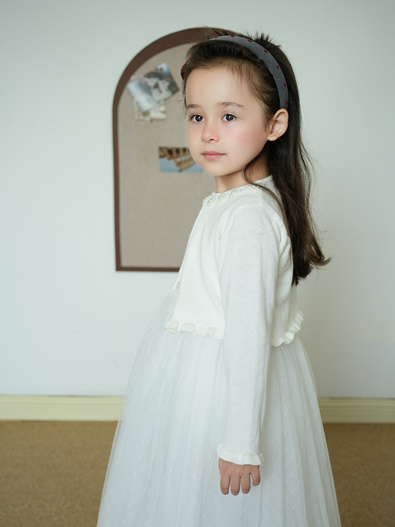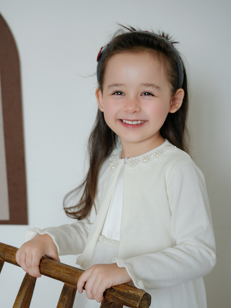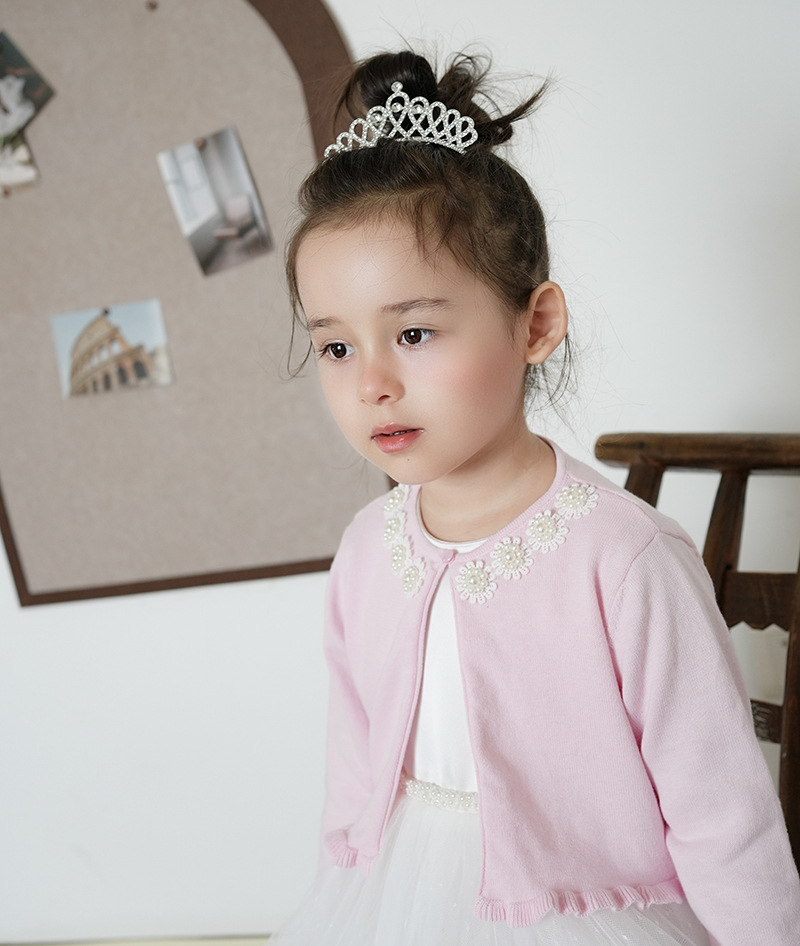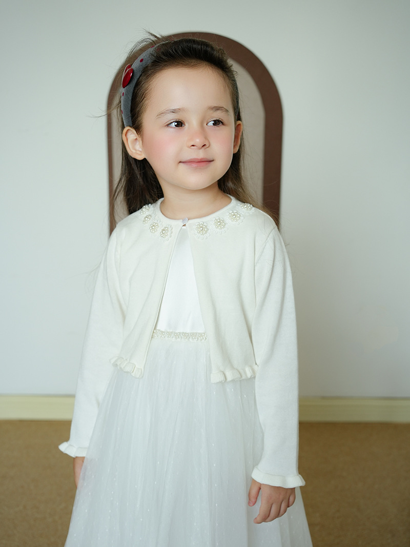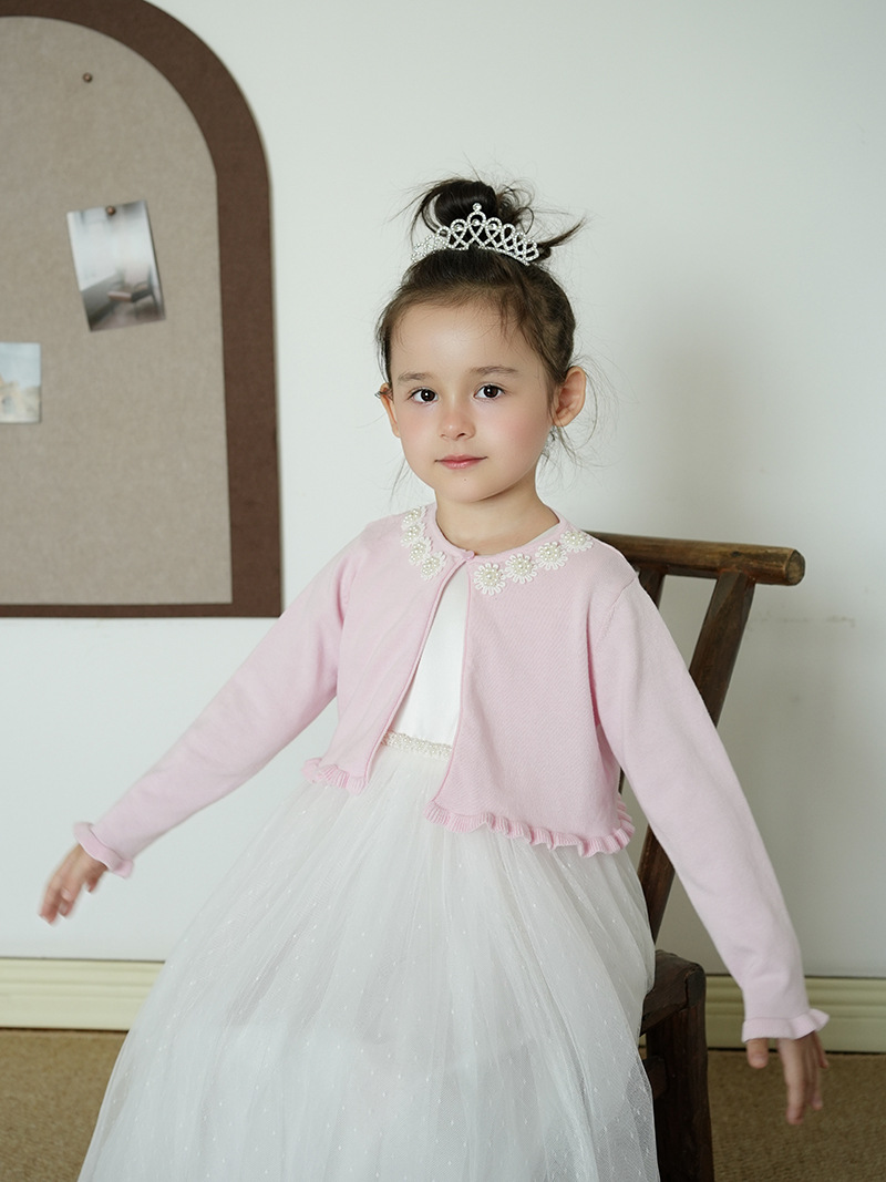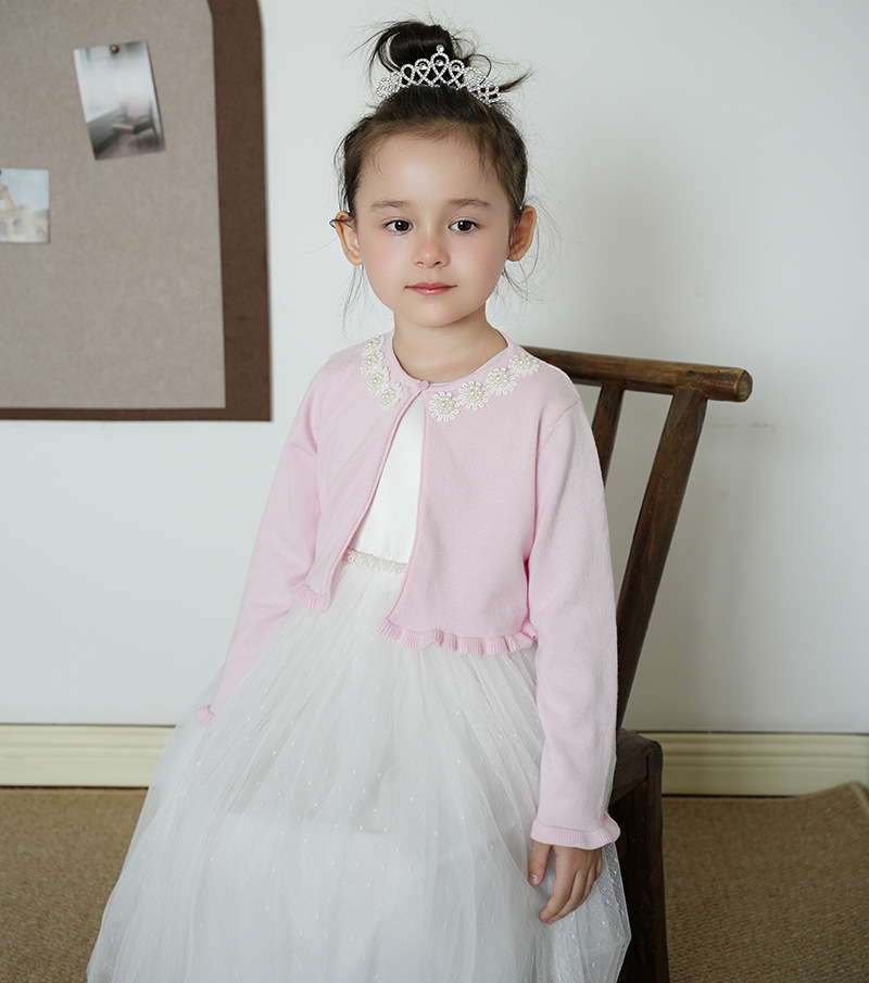 Кросс-бордерный вязаный кардиган для девочек с цветочным бисером, детский маленький шаль с платьем, оптовая продажа