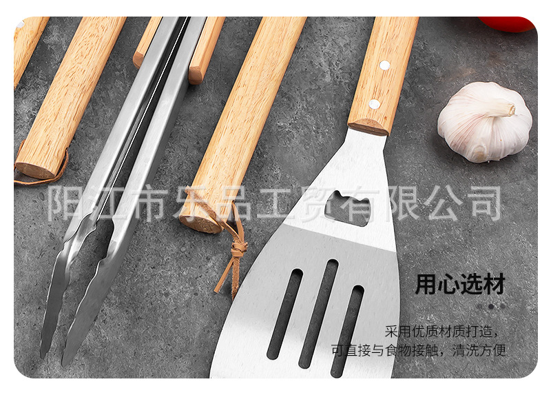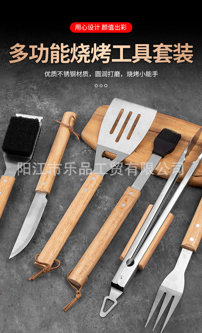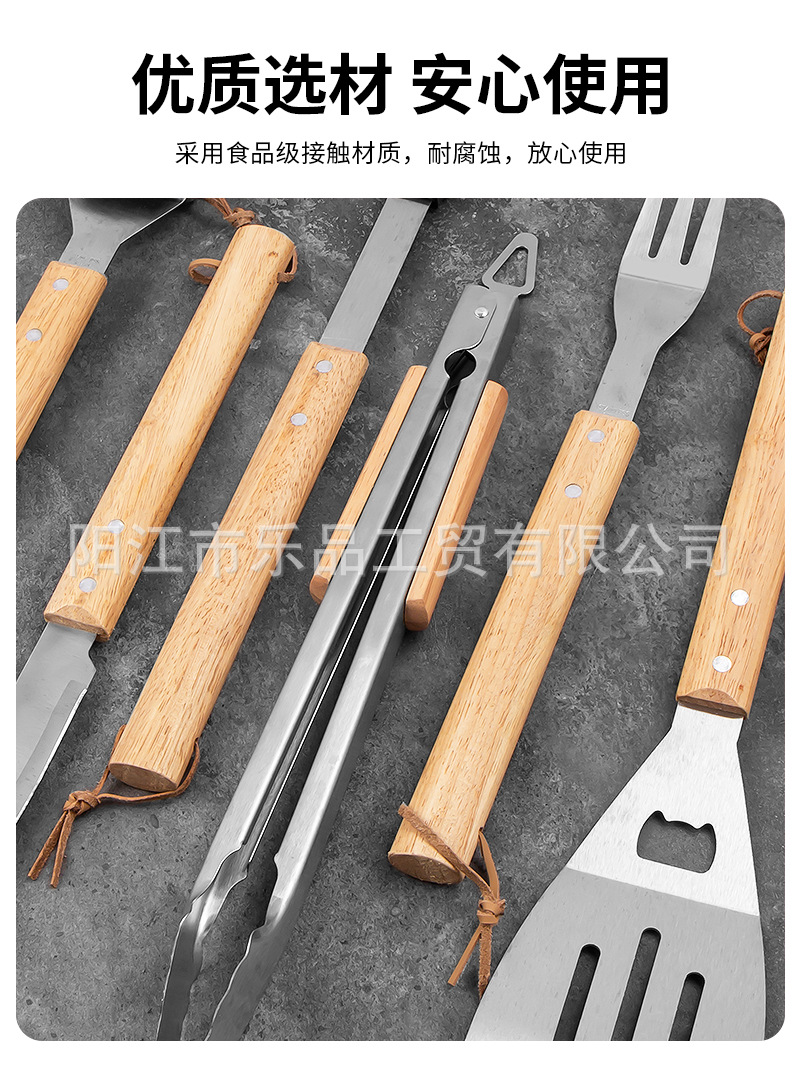 Полный набор инструментов для барбекю из нержавеющей стали с деревянными ручками