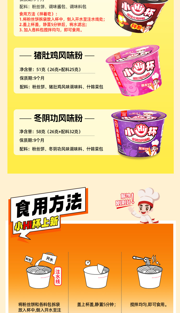 ![]() | Small hi cup tom yum flavor powder 58g [please order 24 boxes for the whole box] | 10шт: ¥2.40, 48шт: ¥2.30 | 0 | 5916526146319 | |