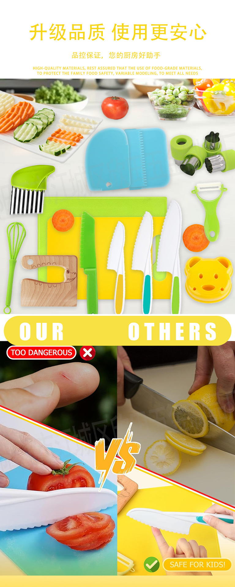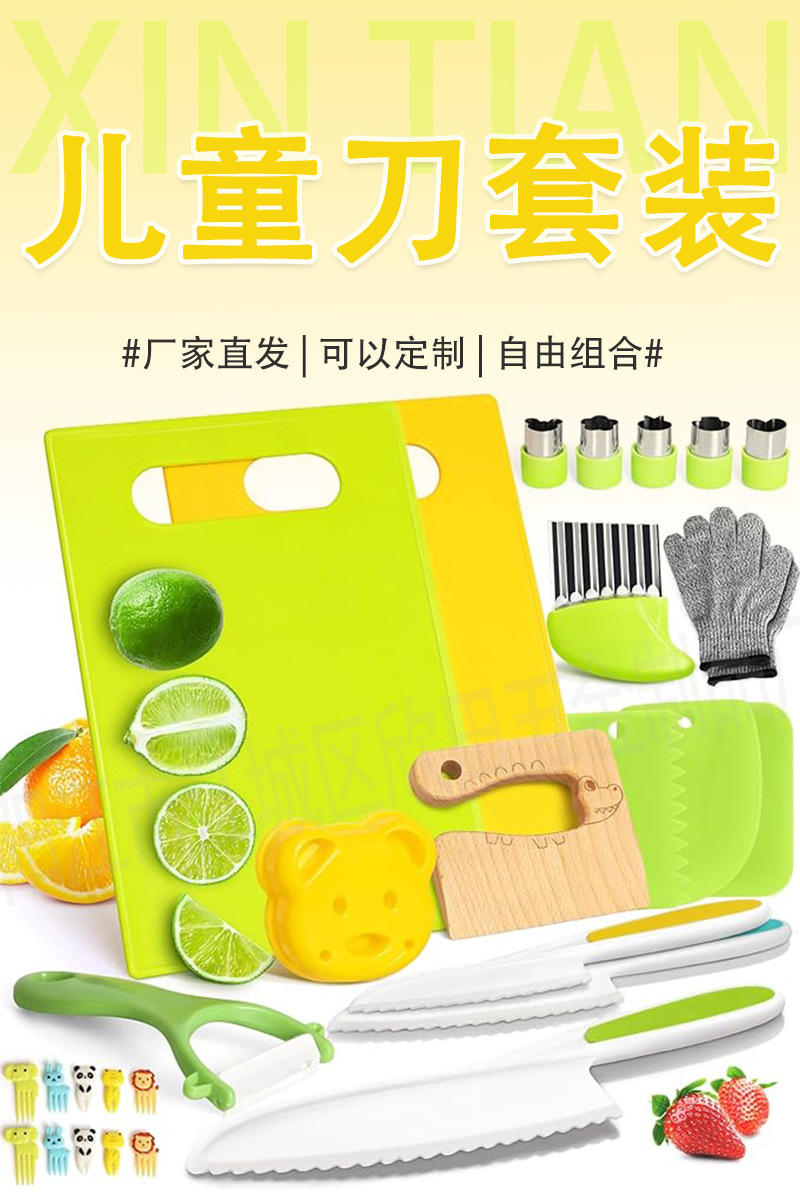 Набор детских безопасных ножей из 28 предметов перчатки разделочная доска пластиковый детский кухонный набор