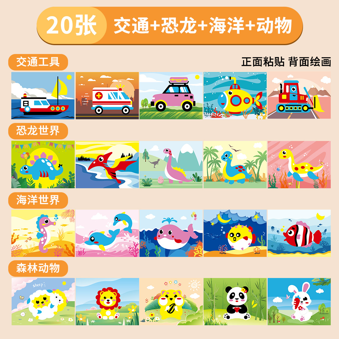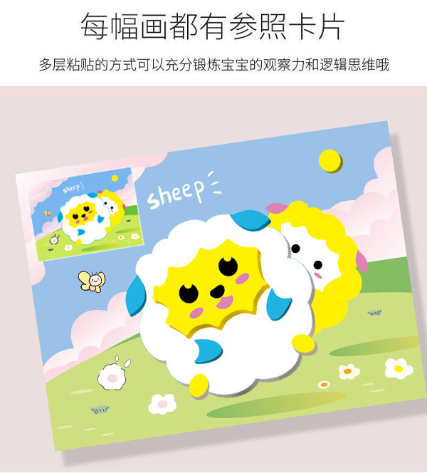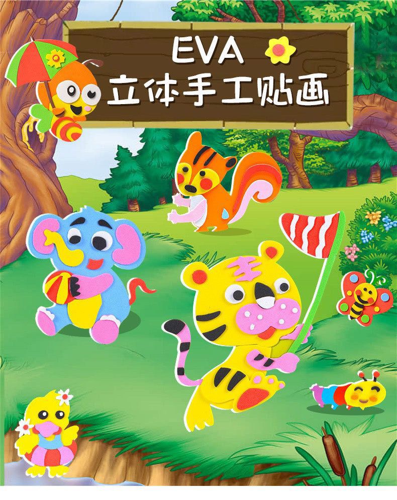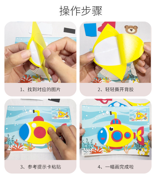 2、EVA手工贴不需要胶水和剪刀等工具,根据底卡示意图即撕即贴,安全环保方便。