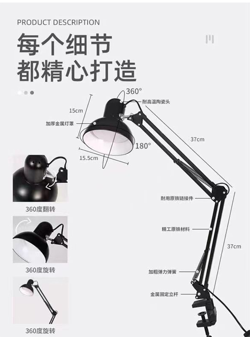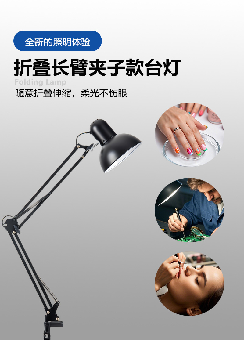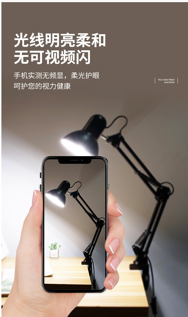 Светодиодная настольная лампа с длинной рукой и защитой глаз для учебы и чтения, креативная складная лампа с зажимом