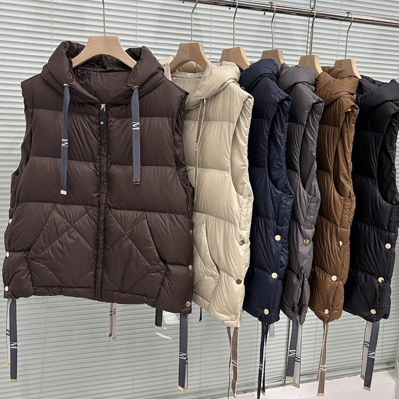 Короткий капюшон, жилет с буквой, осень и зима 2025, модная куртка, боковая кнопка