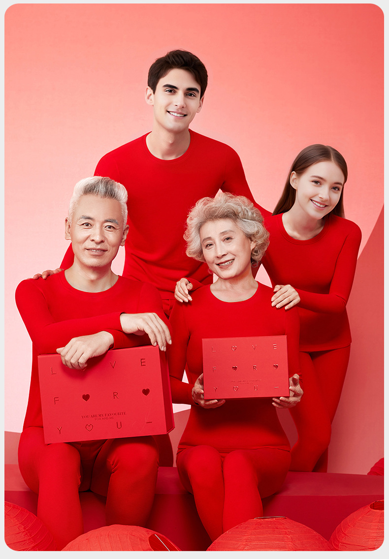 Красная Осеннее Одежда и Брюки Женская Хлопковая Свадебная Подарочная Коробка Мужская Хлопковая Термобелье Набор для Осени и Зимы