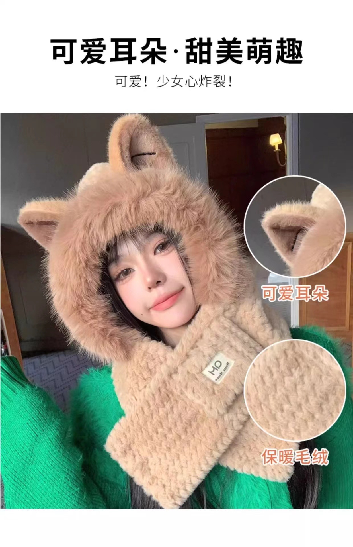 Шапка с ушами лисы шарф комплект из 2 предметов милый пушистый шапка шарф комплект из 2 предметов