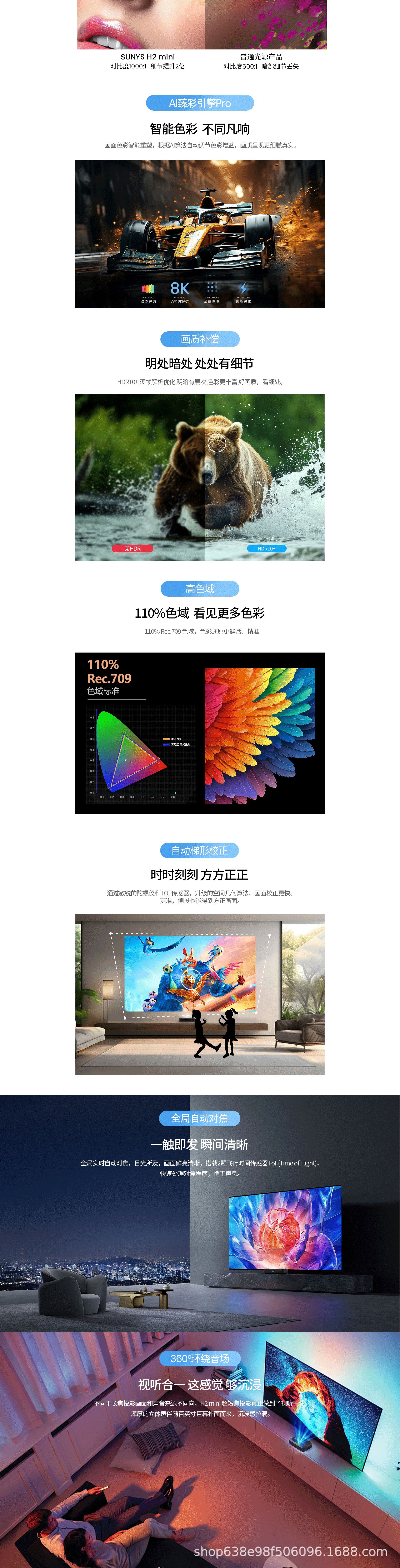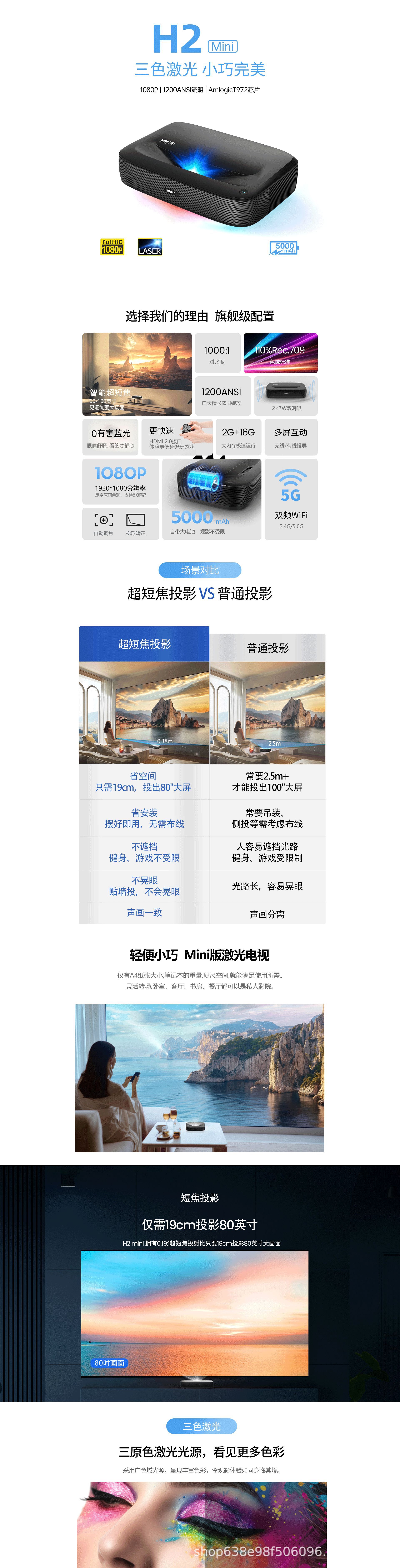 Трехцветный лазерный проектор ультракороткого фокуса HD для дома, офиса, мини-проекция DLP
