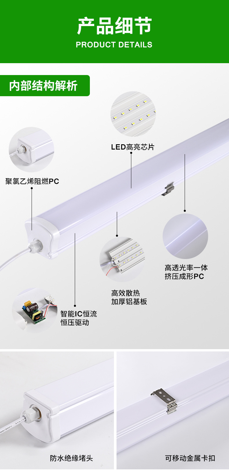 Светодиодная лампа с защитой от влаги, устойчивая к низким температурам, уличная водонепроницаемая трубка, специальная лампа для инженерных мастерских и холодных хранилищ
